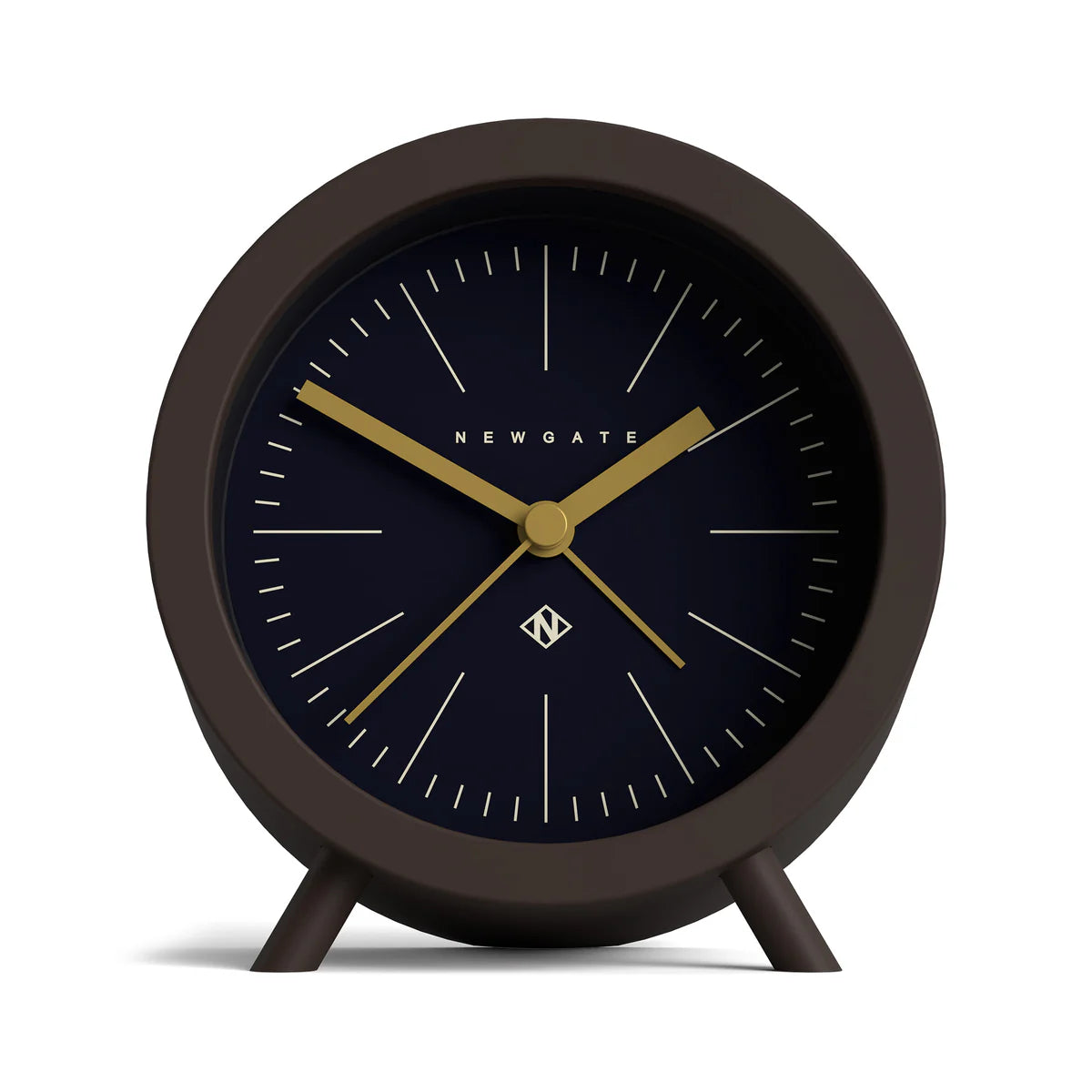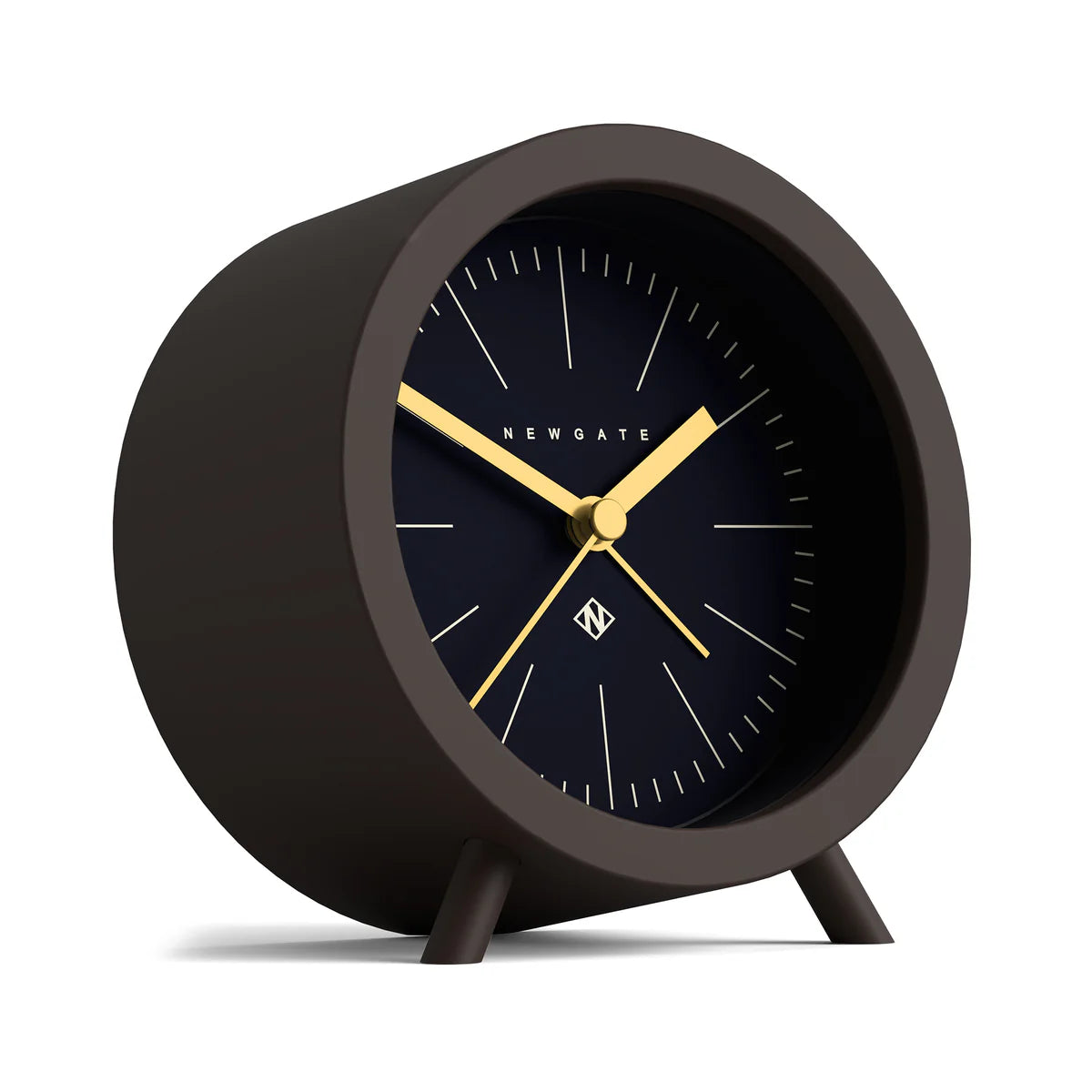 Newgate Fred alarm clock in brown and blue A mid-Century modern alarm clock in ‘Chocolate Brown’. A matt silicone-finish barrel case rests on angled legs, with a minimalist petrol blue marker dial and digital beep alarm. Specifications Product Code: FRED413CHKSize: HWD 12 x 11 x 7cm / 4.7 x 4.3 x 2.8inMaterials: Silicone coated acrylic case, metal hands and glass lensColour: Silicone Chocolate BrownMovement: Accurate and reliable quartz silent sweep movement with no ticking noise. If your hearing is particularly sensitive in a completely silent room you may hear a very quiet whirring.Power: Requires 1 x high quality branded alkaline AA battery (not included)