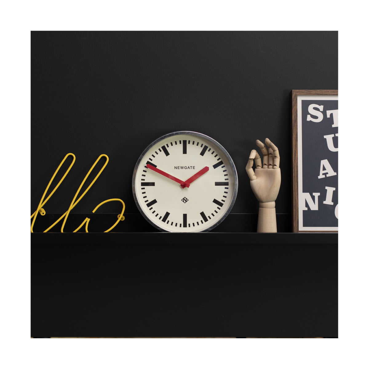 Een industriële verzinkte metalen wandklok met een moderne marker-wijzerplaat en eigentijdse rode wijzers. Een van de meest iconische klokontwerpen van Newgate, de Luggage, is geïnspireerd op de stationsklokken uit het midden van de eeuw die de oprichters van het merk verzamelden tijdens hun reizen door Europa. Een injectie van de moderne en eigentijdse stijl van Newgate heeft de Luggage tot een designklassieker gemaakt. Thuis in een industriële, retro- of minimalistische inrichting, creëert de Luggage-wandklok een opvallend middelpunt in de keuken, woonkamer of kantoor.