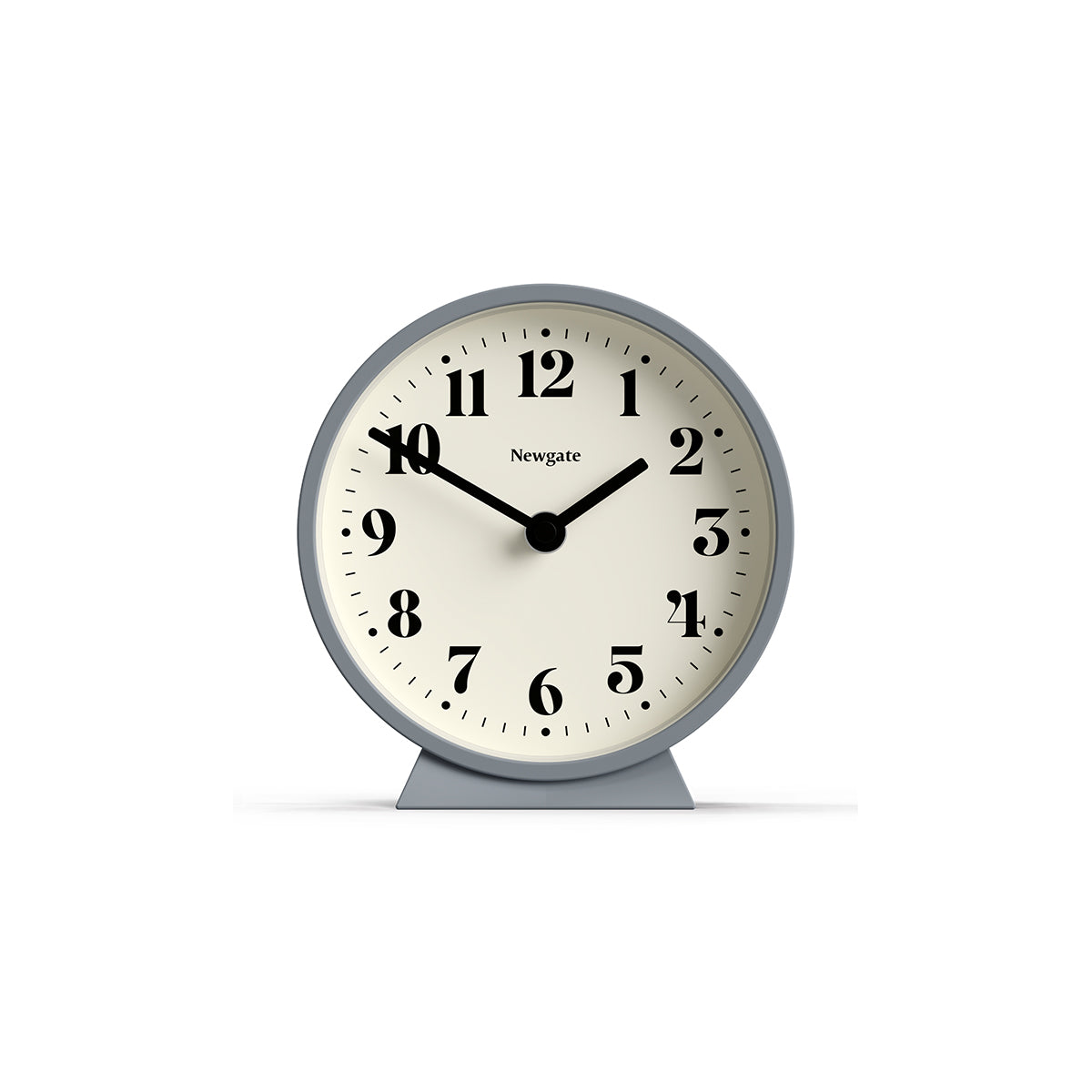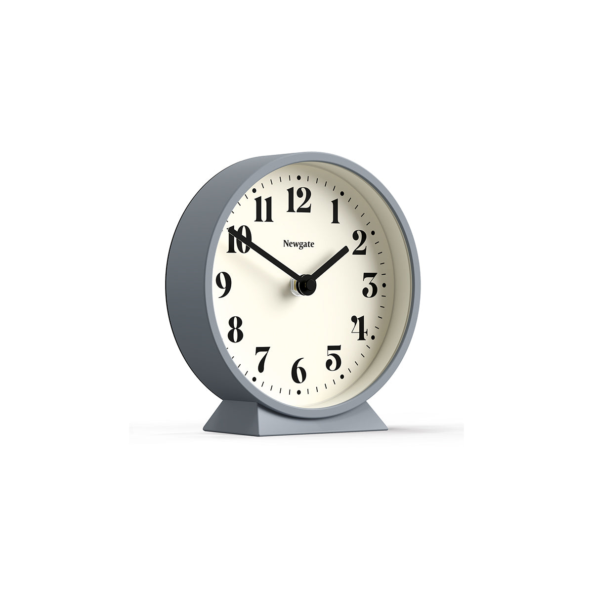 Een hedendaagse marine blauwe tafelklok met een minimalistische wijzerplaat.