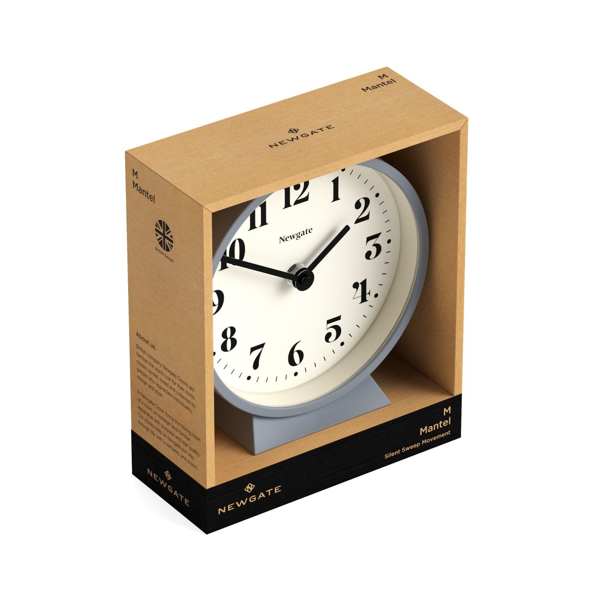 Verkrijgbaar in 3 kleuropties, heeft deze moderne mat afgewerkte schouwklok een grafische theaterwijzerplaat en een glazen venster.