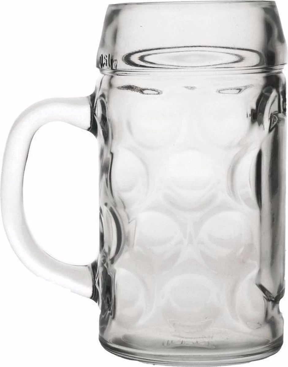 Bierpullen 1 liter, 3 stuks. Dit zijn de echte grote Duitse bierpullen voor Oktoberfest of Apre ski feesten. De inhoud is 1 liter en de pullen zitten verpakt in een pakket van 3 stuks.