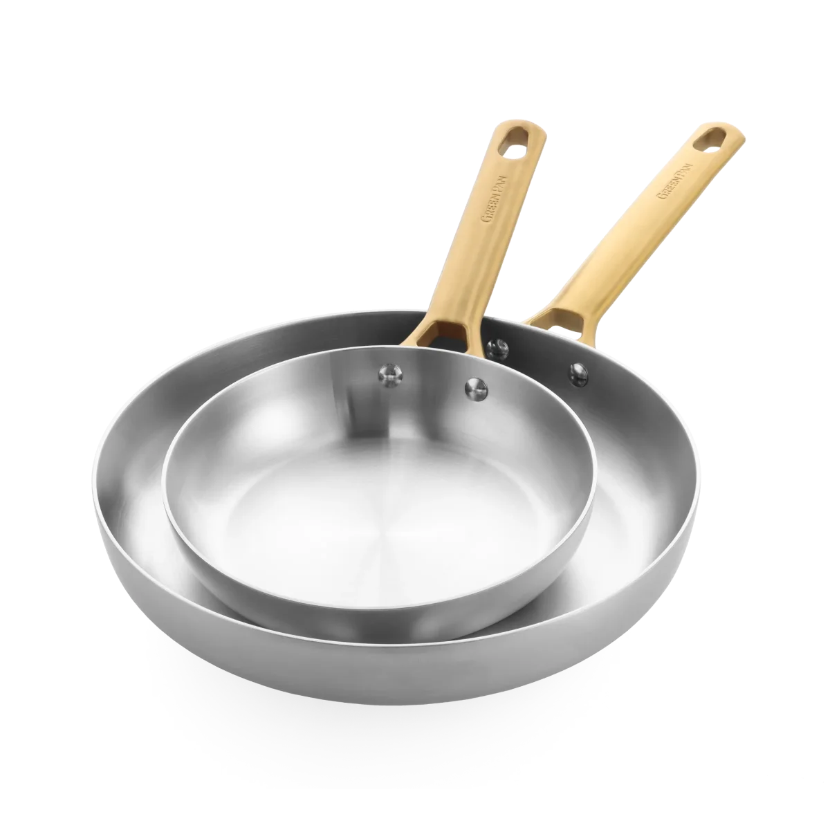 Hoogwaardig 3-laags roestvrij staal (55% gerecycled roestvrij staal) zorgt voor een gelijkmatige warmteverdeling, nauwkeurige controle, perfect bruinen, schroeien, braden, blussen en nog veel meer.