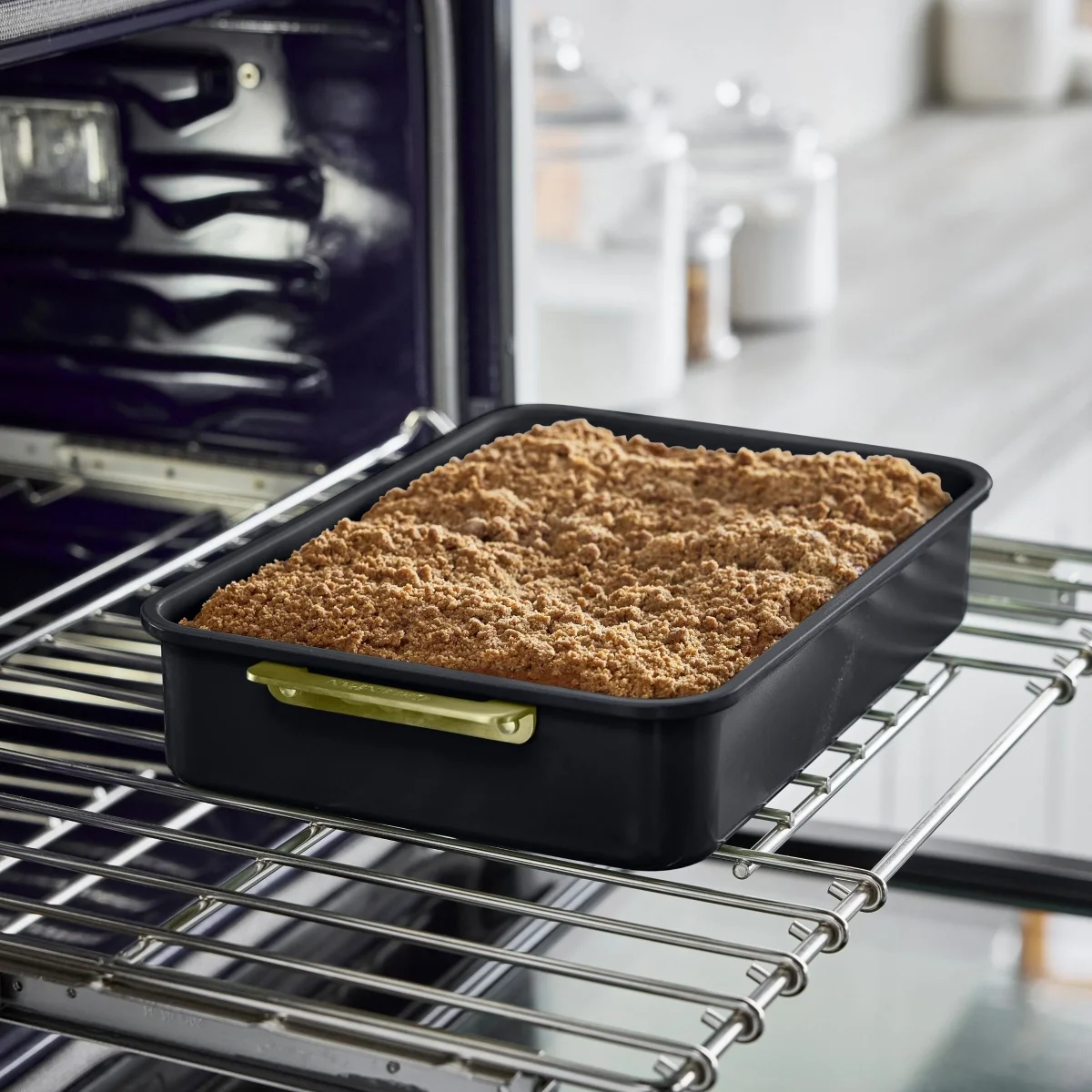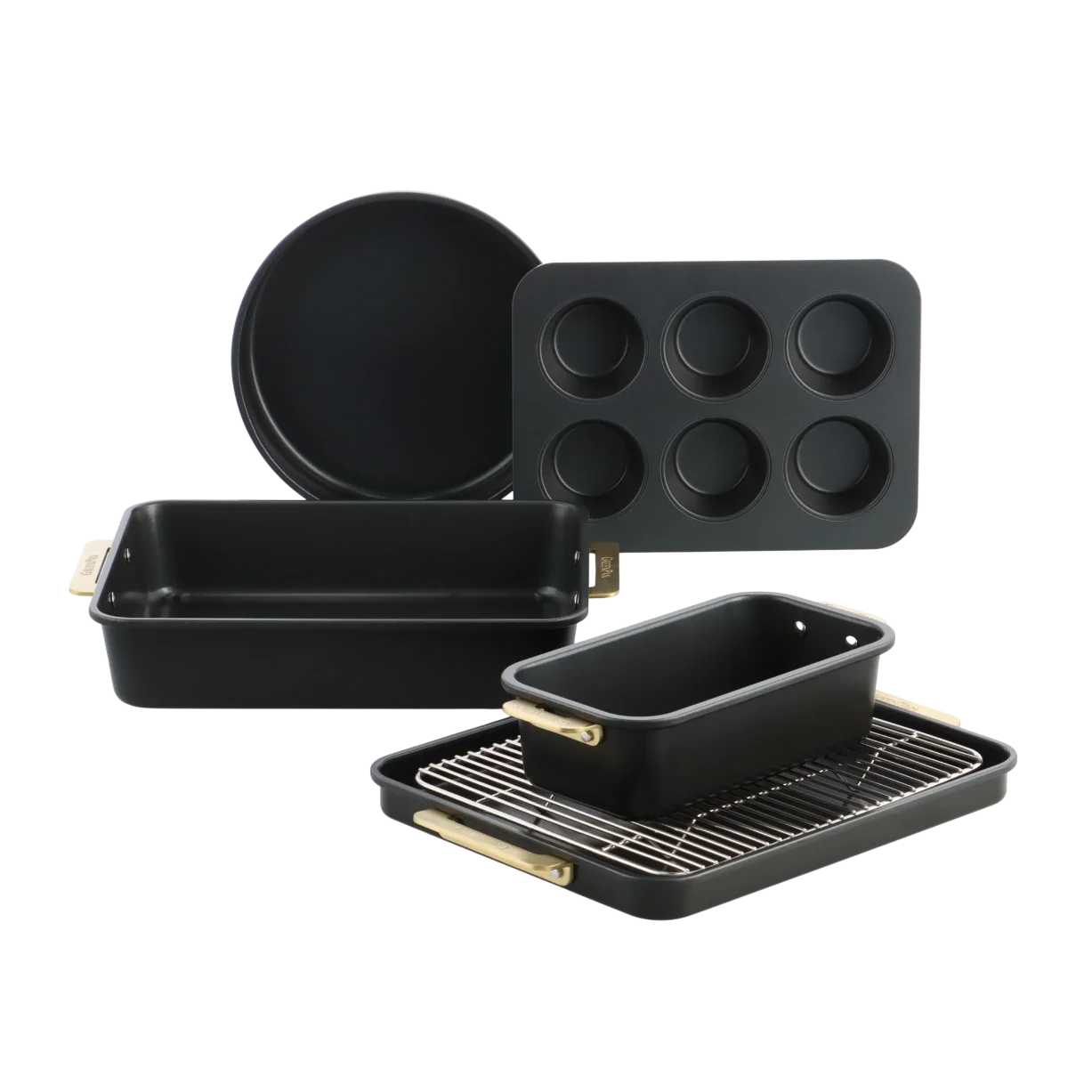 Met goudkleurige, slijtvaste handgrepen en een stevig afkoelrek is dit de ideale keuze voor creatieve bakkers die bij elke bakbeurt perfecte resultaten en stijl willen!