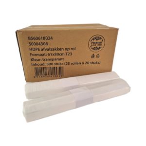 De zakken hebben een dikte van T25. De hoogte van het T-nummer geeft de dikte van de afvalzakken aan.