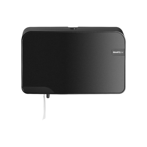 Deze zwarte QuartzLine toiletroldispenser is speciaal ontworpen voor twee grote rollen coreless/kokerloos toiletpapier met een maximale diameter van 15 cm.