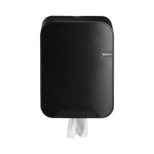 Dankzij het compacte ontwerp biedt de dispenser veel capaciteit, doordat hij plaats biedt aan twee grote doprol toiletrollen.