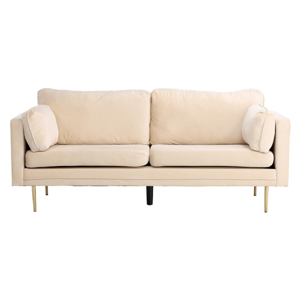Ontdek de elegante en comfortabele Rochester 3-zitsbank van QUVIO, bekleed met luxueus crèmekleurig fluweel. Deze bank is een stijlvol icoon met zijn strakke Scandinavische vormgeving en moderne hoge armleuningen. De cilindervormige metalen poten in goudkleur geven de bank een tijdloze uitstraling, waardoor hij moeiteloos in elk interieur past. Met een royale breedte van 203 cm biedt deze bank voldoende ruimte voor ontspanning. De hoogwaardige polyester fluwelen bekleding zorgt voor een zachte en duurzame zitervaring.