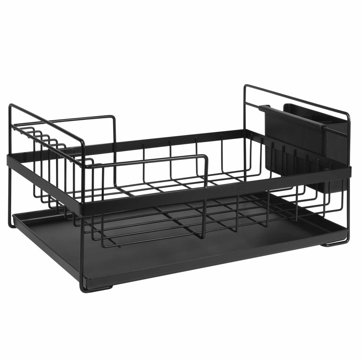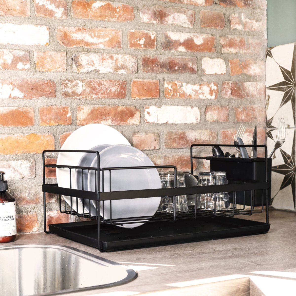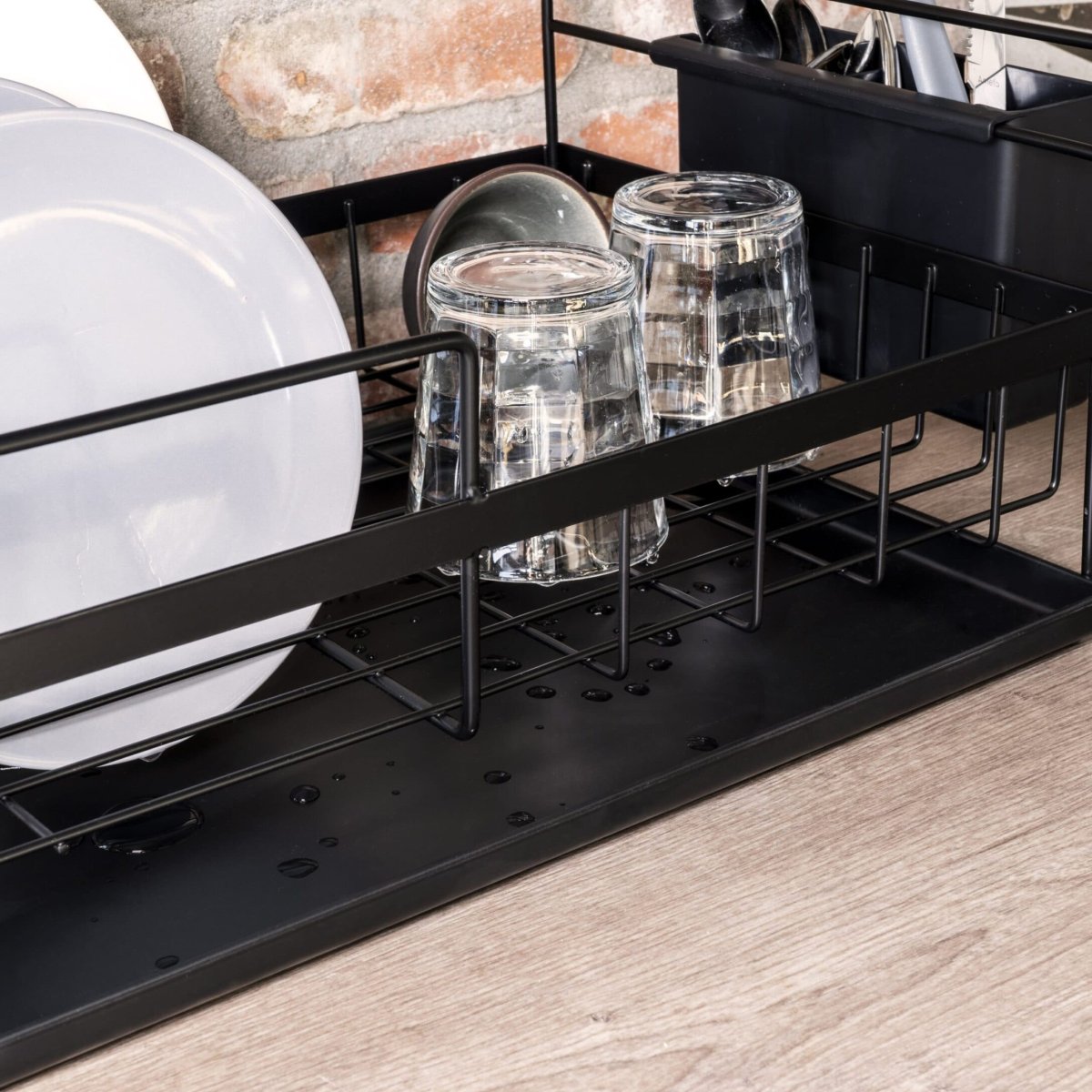 Nooit meer afdrogen met dit zwarte afdruiprek met lekbak