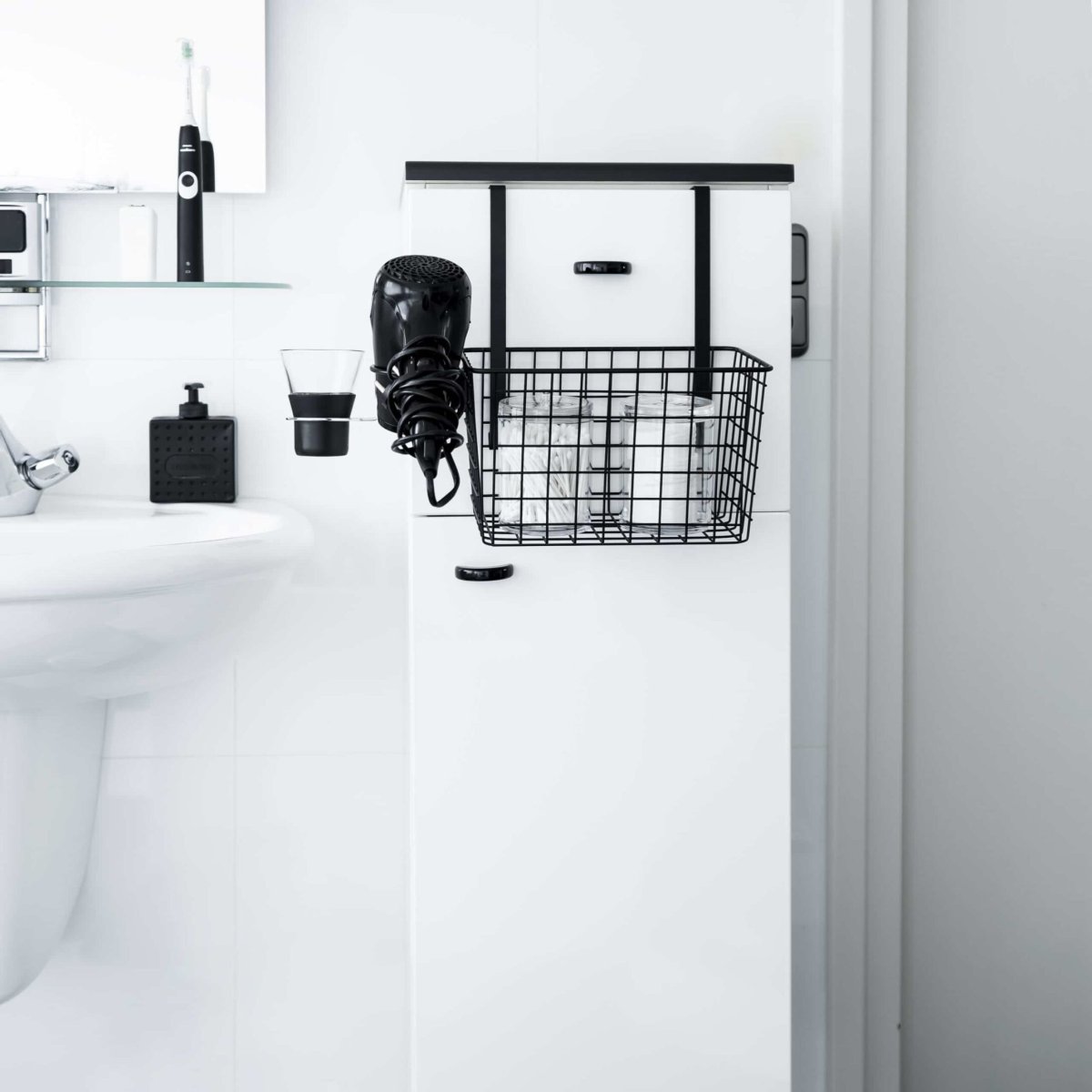 Een handige badkamer rekje voor het opbergen van een föhn