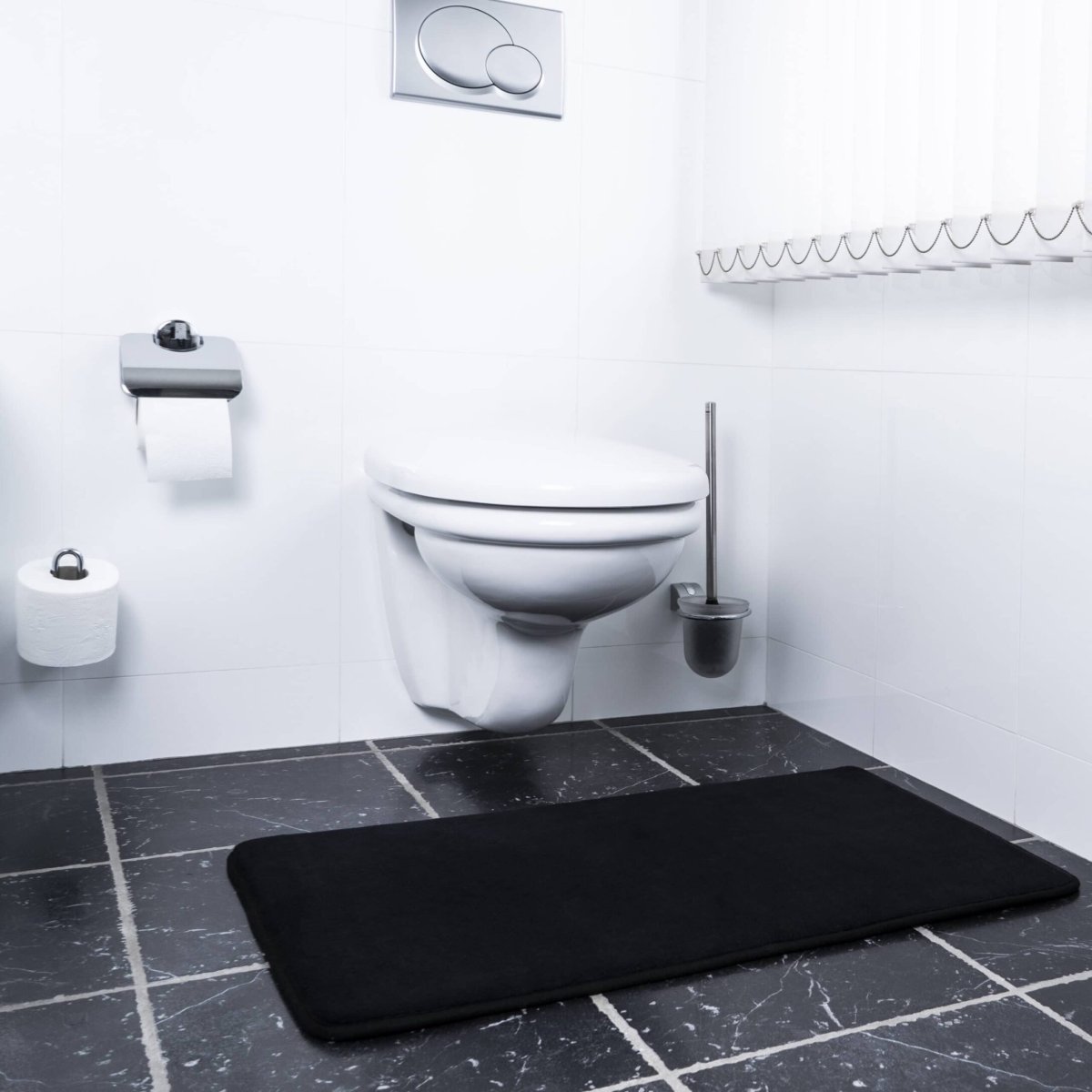 Houd je voeten warm op koude, gladde vloeren in badkamers, wasruimtes en daarbuiten met deze opvallende badkamer accessoire. Deze zwarte badmat heeft een rechthoekige vorm dat een statement maakt in je ruimte en een heerlijke plek om te landen als je de hitte uit de douche of het bad verlaat. Je vergroot hierdoor het comfort in de badkamer en geniet vooral tijdens de koudste maanden van het jaar van aangename warmte voor je voeten. De zwarte badmat is lekker zacht en voelt na het uitstappen uit je douche of bad meteen lekker aan.