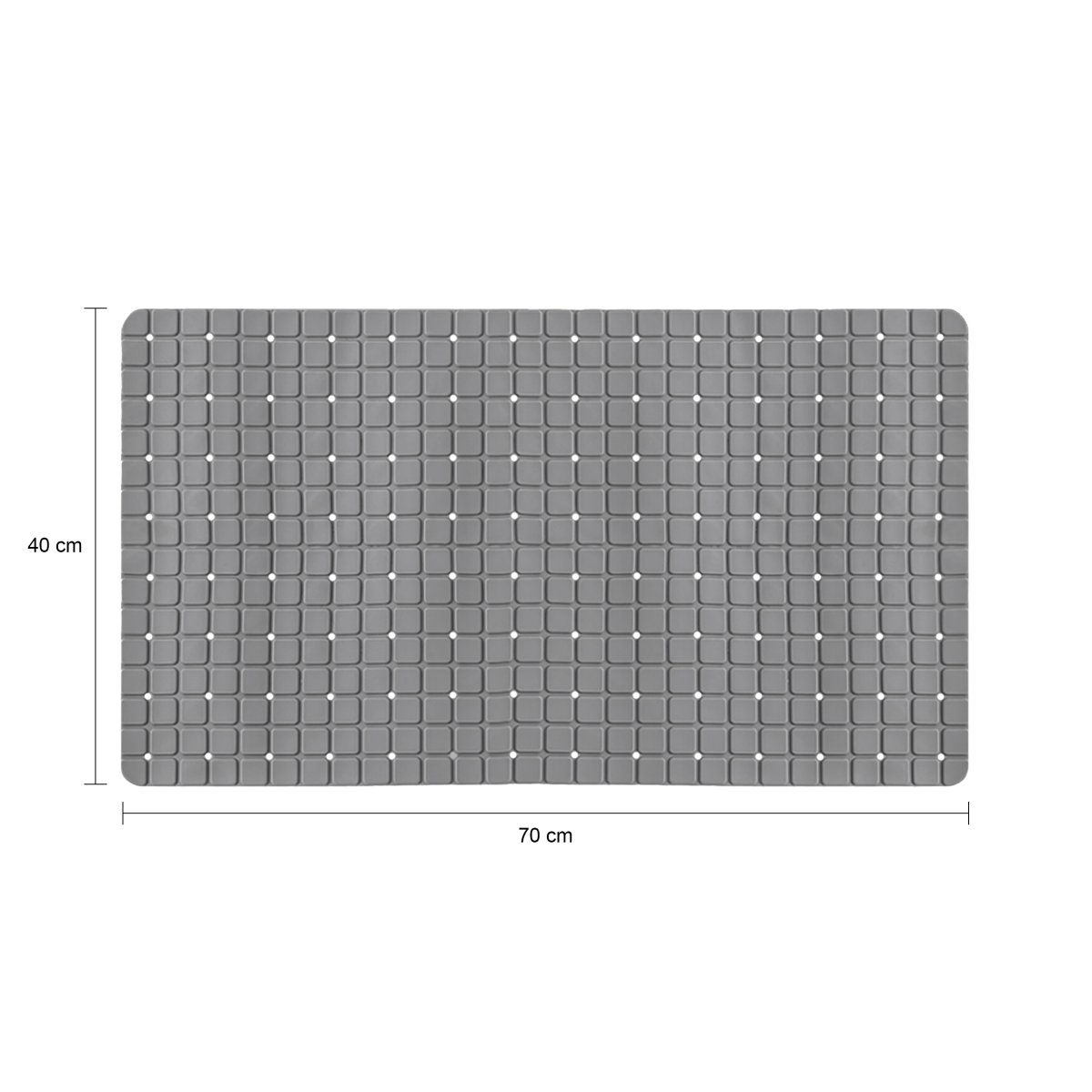 De badmat is 40 x 70 centimeter. Dat is een ideaal formaat voor veel badkamers. Het is groot genoeg dat je er veilig en comfortabel op kunt staan, maar niet zo groot dat het teveel ruimte in beslag neemt of dat het niet in de douchecabine past. Hierdoor is de badmat van PVC voor elke badkamer geschikt.