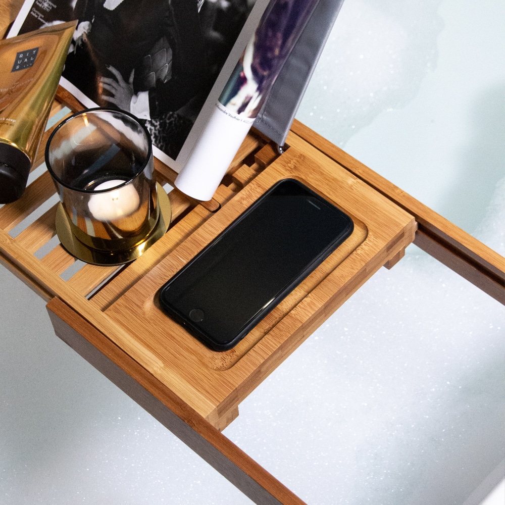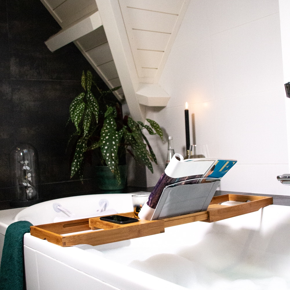 Met het QUVIO badrekje ervaar je een ontspannend bad nu nóg fijner. Neem een drankje en een boek of tablet mee in bad en voeg daar eventueel nog een kaarsje aan toe om optimaal te genieten van jouw verdiende warme bad! Verander je badkamer met deze accessoire in een mini-spa.