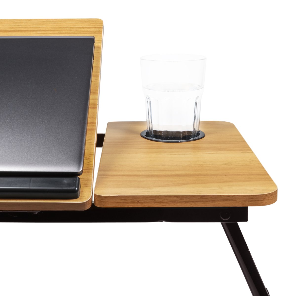 QUVIO Bedtafel met bekerhouder – Verstelbaar – Bruin