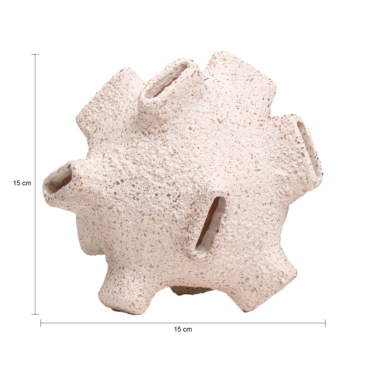 Dankzij het formaat van 15×15 cm en het lichte gewicht van 450g, is dit beige ornament eenvoudig te plaatsen op diverse plekken in je interieur. Of het nu op een boekenplank, bijzettafel of dressoir staat, dit decoratief object past overal. De veelzijdigheid maakt het een van de meest praktische accessoires in huis.