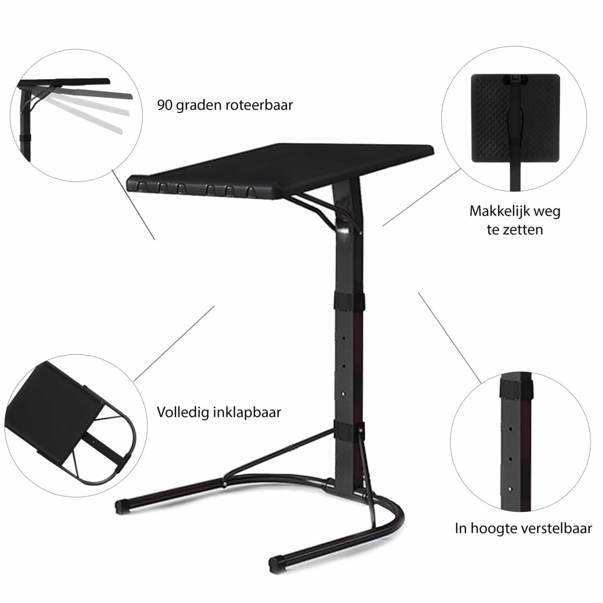 Overal werken of studeren met deze zwart verstelbare laptoptafel