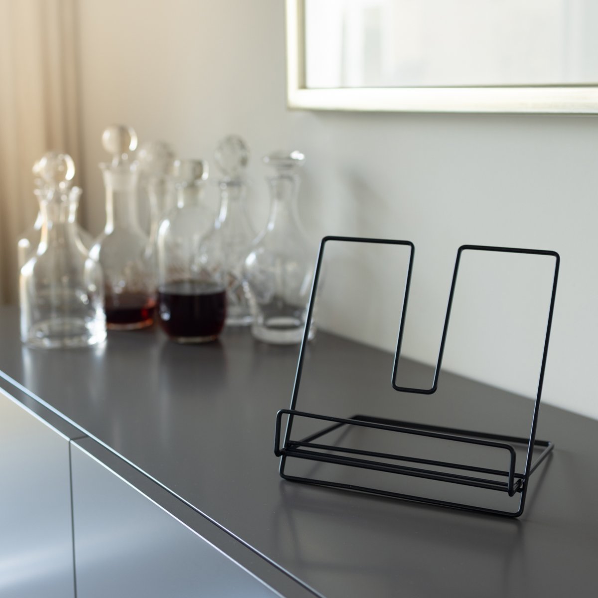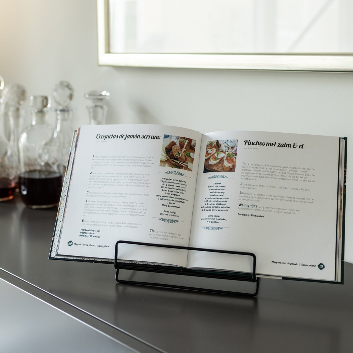 Heb jij een boek in huis dat je graag een speciaal plekje wilt geven? Of zoek jij een fijne manier om je kookboek open op het aanrecht neer te zetten? Dan is deze metalen boekensteun precies wat jij nodig hebt. De boekenstandaard is geschikt voor één boek tegelijkertijd en is de ideale boekenhouder om een boek open mee neer te zetten. Dit kan in de keuken zijn, maar staat ook mooi in een boekenkast of boekenrek. Het metalen rek is minimalistisch en leidt de aandacht daardoor niet van het boek af.