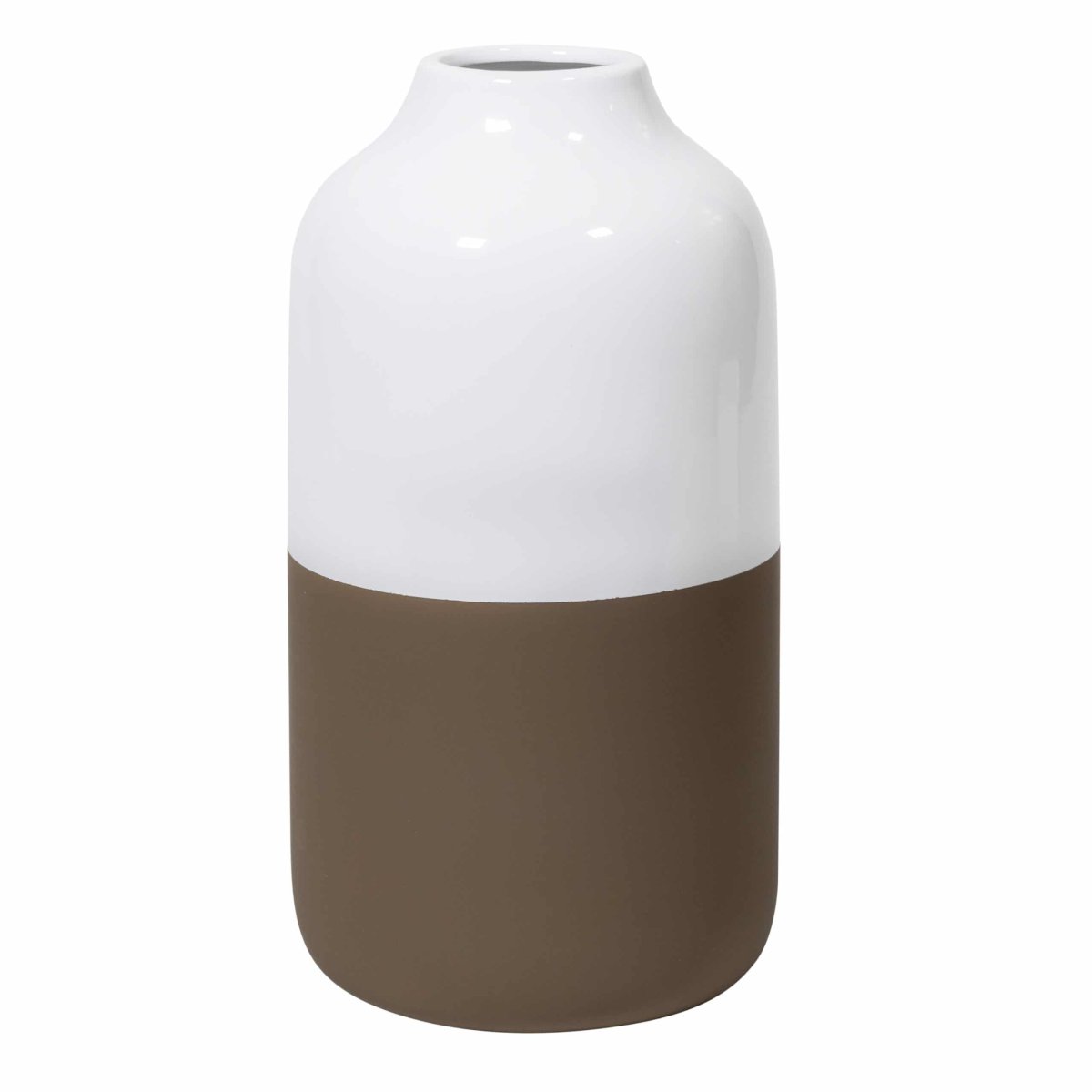 QUVIO Bruine vaas – Keramiek – Porselein – 12x12x23 cm – Bruin – Wit