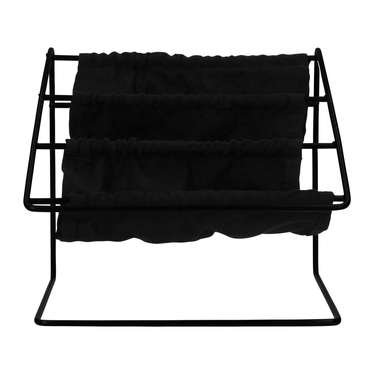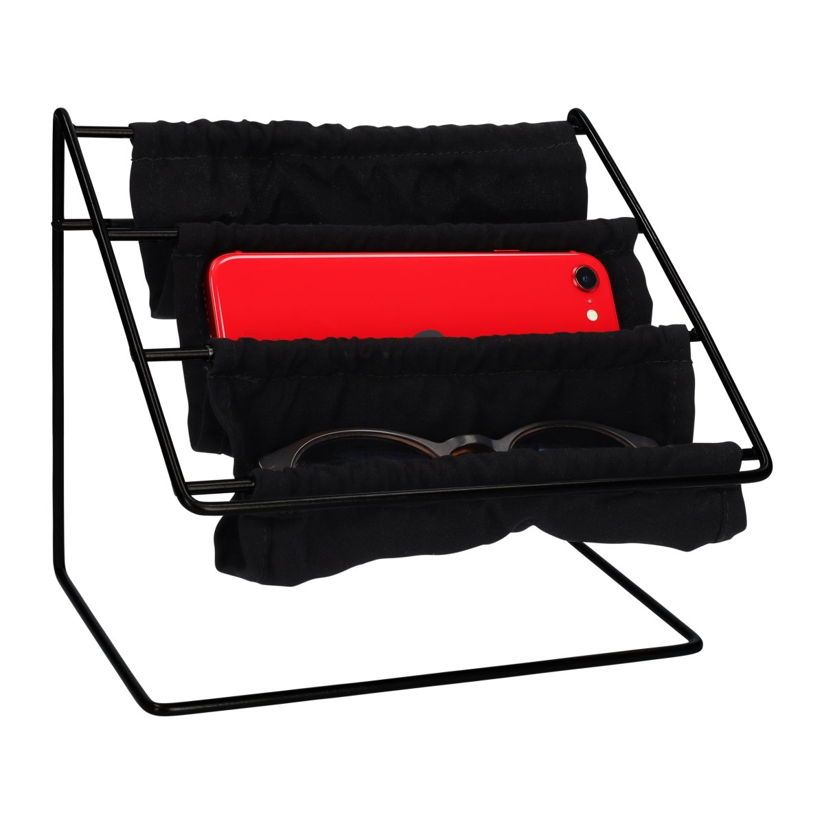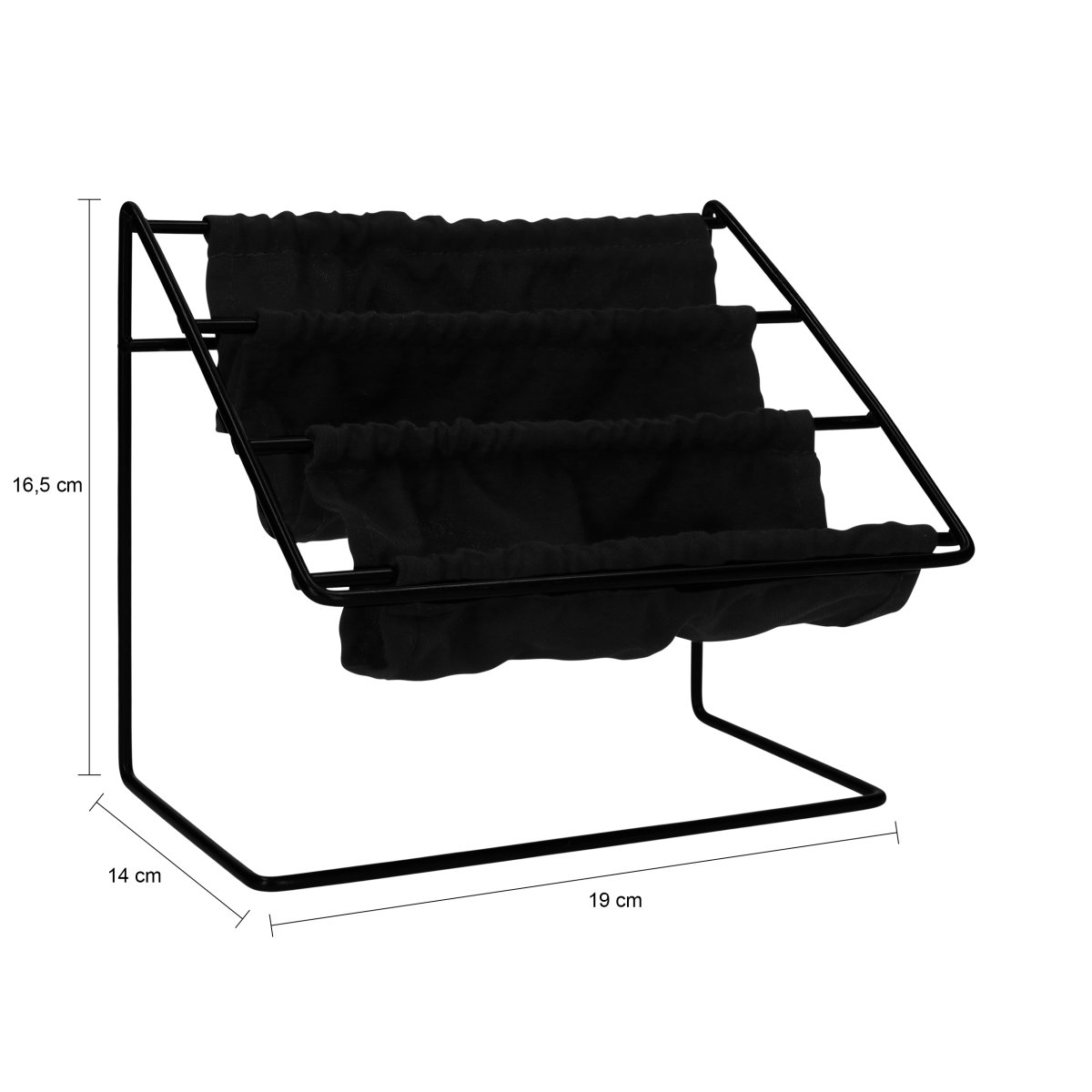 De opbergers zijn gemaakt van stof en metaal. De metalen constructie is zwart en heeft plek voor drie stoffen vakjes waarin je spullen opbergt. Ook het stof van het bureau opbergrekje is zwart van kleur. Deze neutrale organizer gaat goed samen met verschillende bureaus en interieurstijlen.