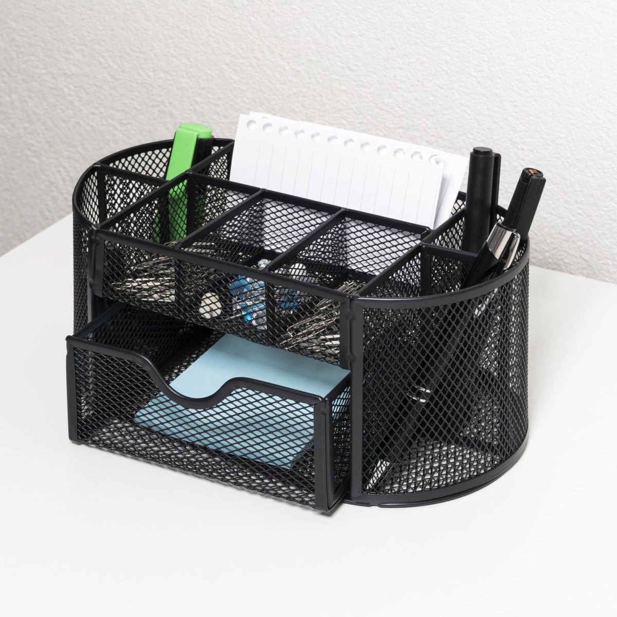 Niemand vindt het fijn om een rommelig bureau te hebben. Je kunt nooit een pen vinden als je er eentje nodig hebt en ook dat ene belangrijke document lijkt opeens verdwenen. Een clean desk is erg belangrijk voor jouw prestaties. Een goede desk organizer kan dan ook veel frustratie laten verdwijnen. Met een bureau organizer met 8 vakken + 1 lade heb je voldoende ruimte voor alle pennen, sticky notes en paperclips. Dat schept al vele orde in de chaos van jouw studie- of werkplek.