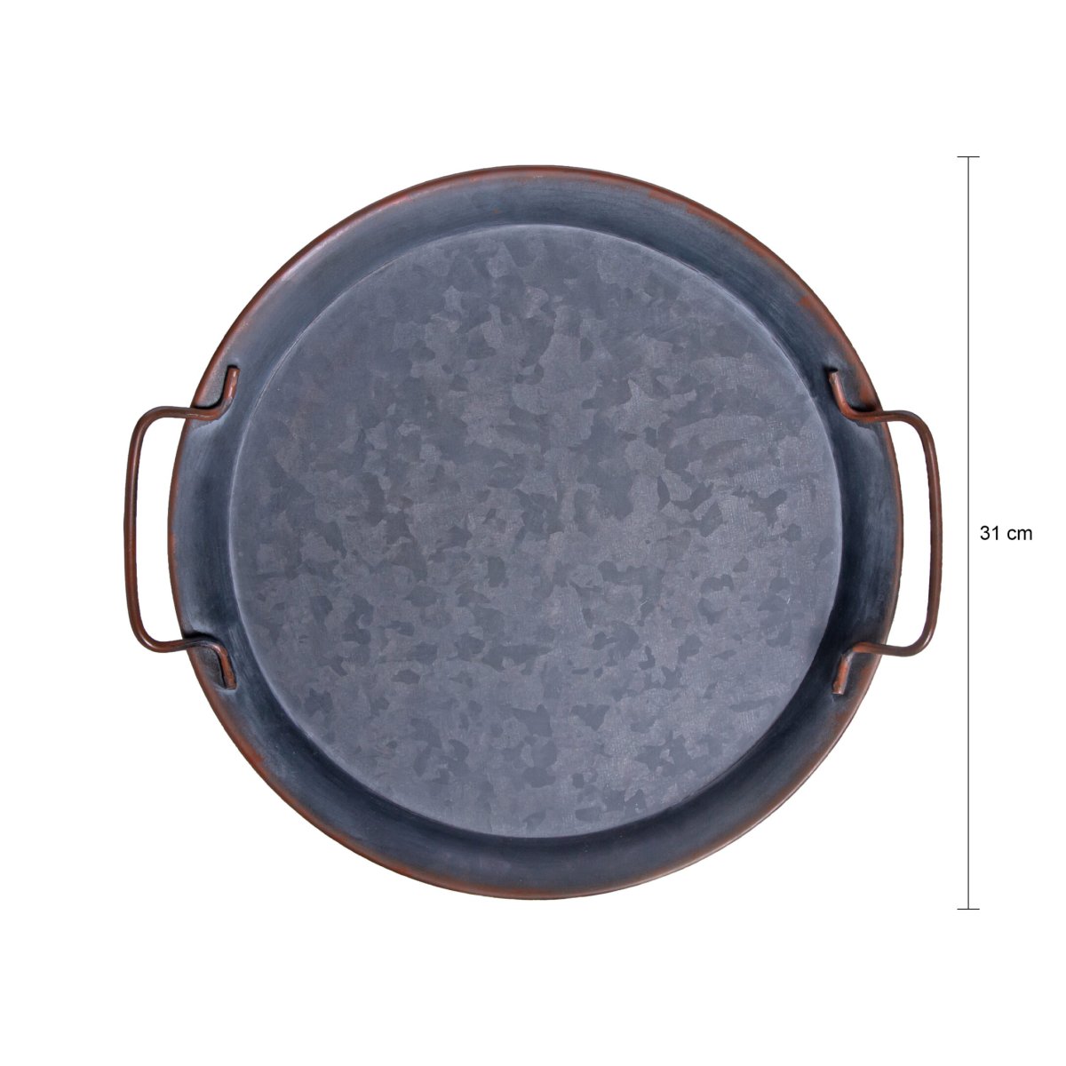 Dit vintage Dienblad met handvaten heeft een groot plateau en een diameter van 31 centimeter. De buitenkant van elk item is afgewerkt met robuust metaal dat een echte aandachtstrekker is. Het materiaal is van nature voedselveilig, niet-corrosief en geur-, smaak- en vlekbestendig. Zo weet je dus zeker dat jouw dienblad er lang goed uit blijft zien en dat je je eten of drinken met stijl kunt serveren.