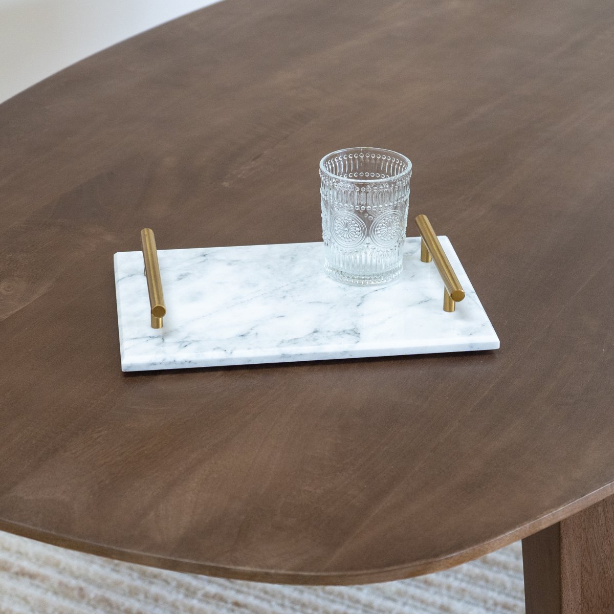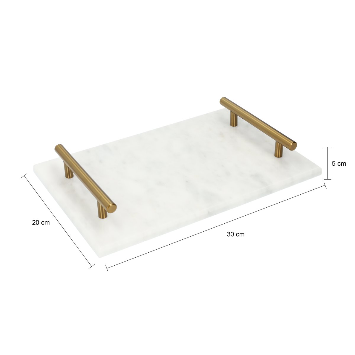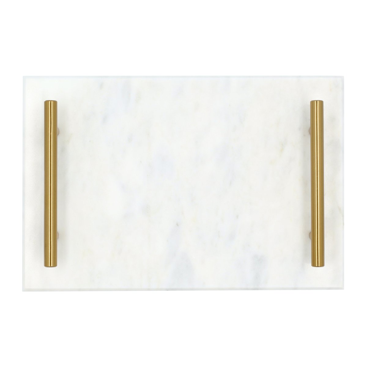 Een luxe marmeren dienblad met gouden handvaten voor in elk interieur