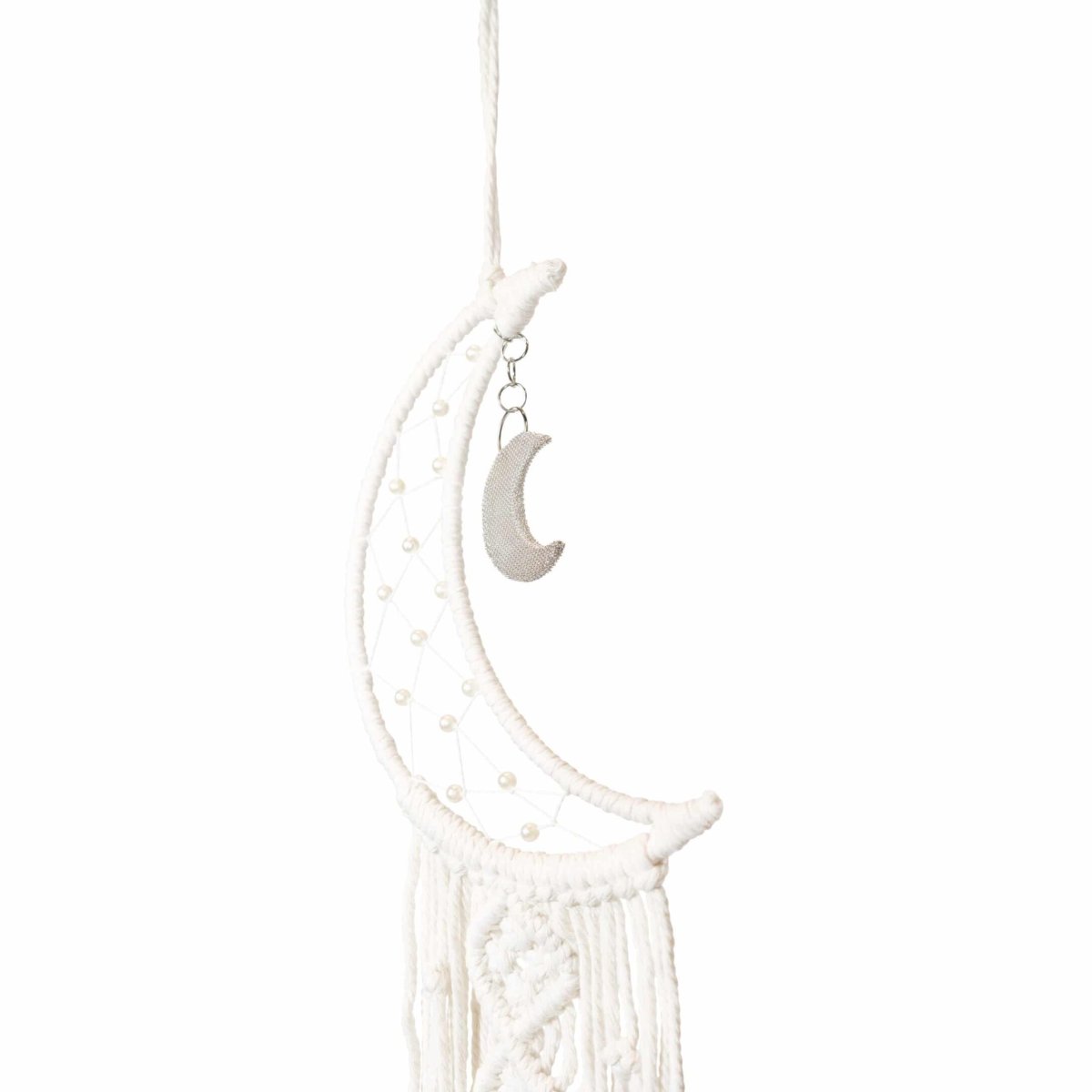 Je kent het wel, de dromenvangers. Sommigen beweren dat je er inderdaad dromen mee kunt vangen. Anderen beschouwen de dromenvanger gewoon als mooie slaapkameraankleding. Wat ook de meningen zijn, dit is een bijzonder item. Deze dromenvanger van QUVIO is in twee versies te verkrijgen. De maanvormige dromenvanger, inclusief de versiering onderaan de maan, is 94 cm hoog. De afmeting van de maan zelf is 14 cm breed en 20 cm hoog.