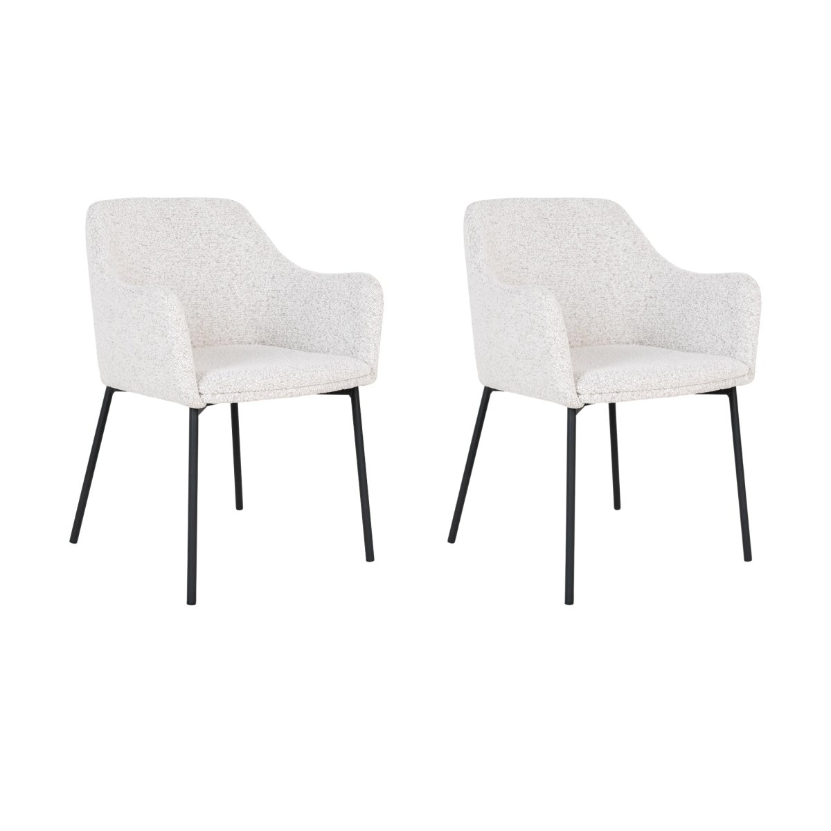 De witte eetkamerstoel bouclé set van 2 past perfect in een Scandinavisch, modern of industrieel interieur. Het stalen frame geeft de stoel een stoere uitstraling, terwijl de zachte bouclé bekleding juist een warme touch toevoegt. Deze eetkamerstoel met armleuning zorgt voor extra comfort, ideaal voor lange diners of gezellige avonden met vrienden en familie.