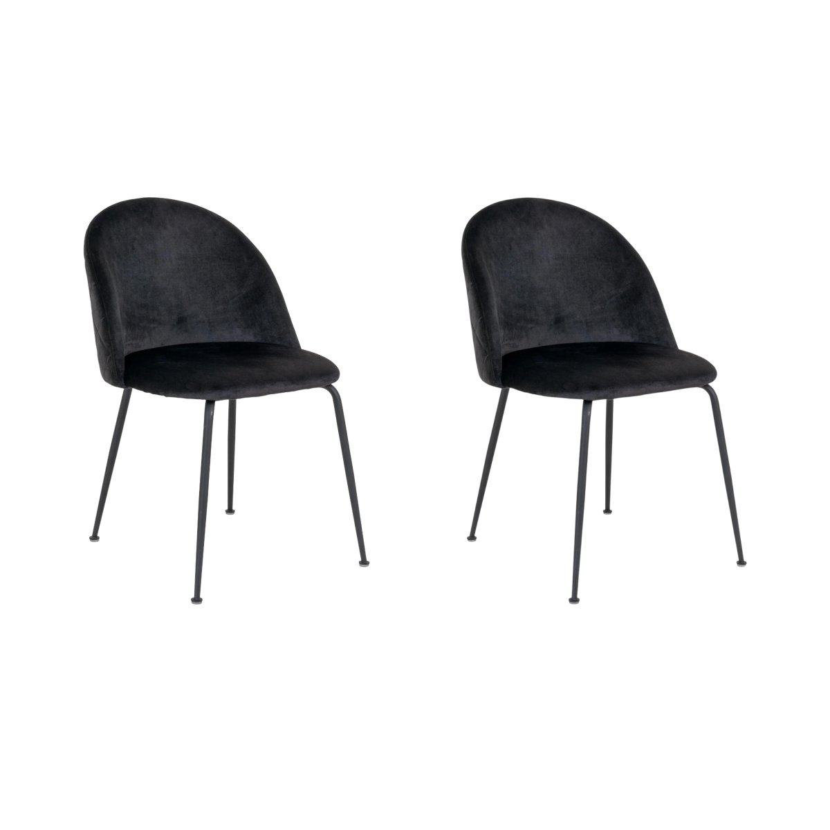 QUVIO Eetkamerstoel Lowen – Fluweel – Staal – Zwart – Set van 2
