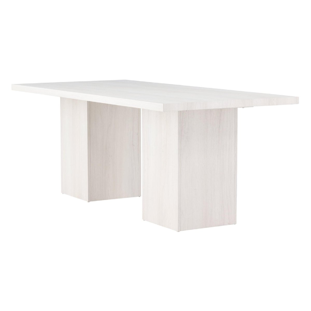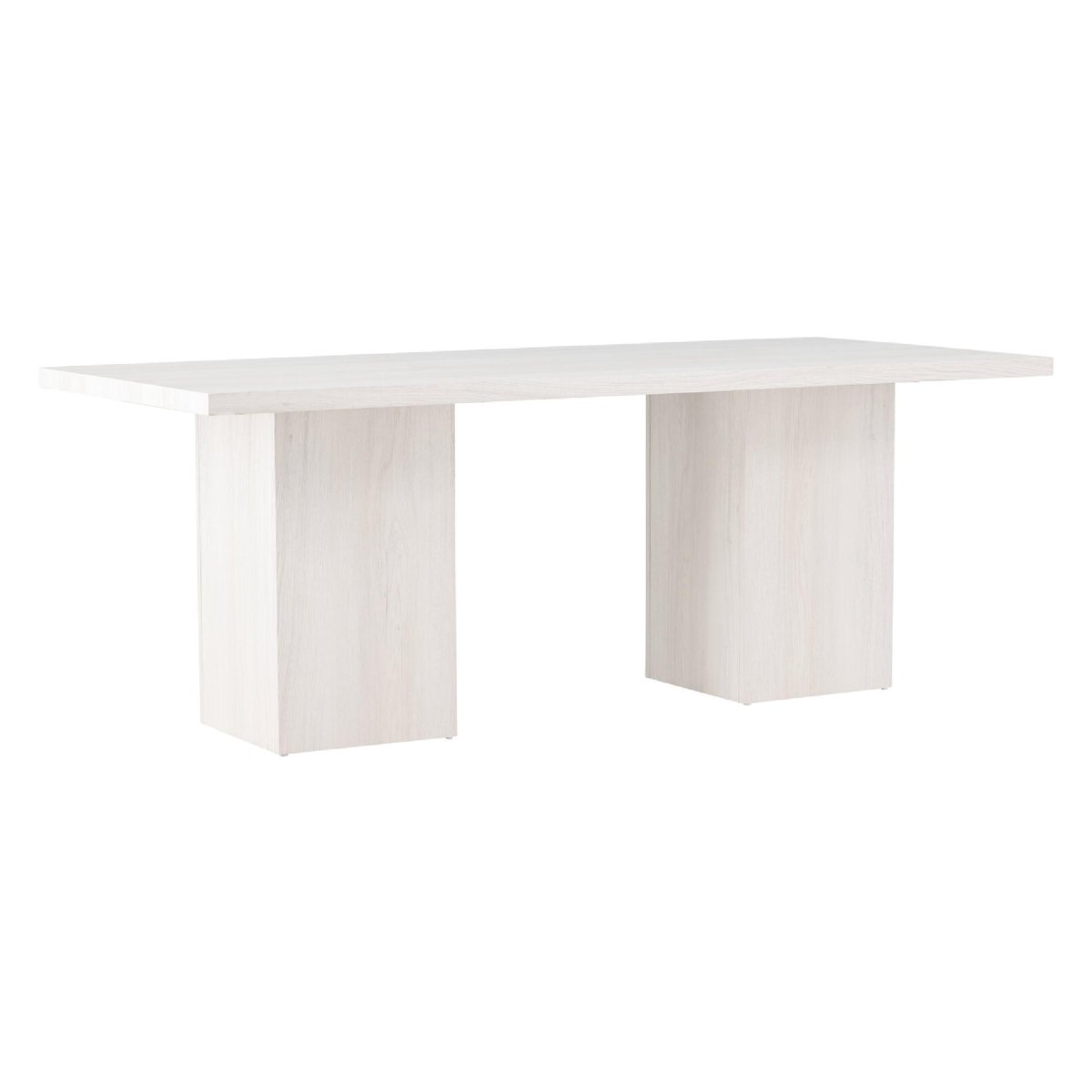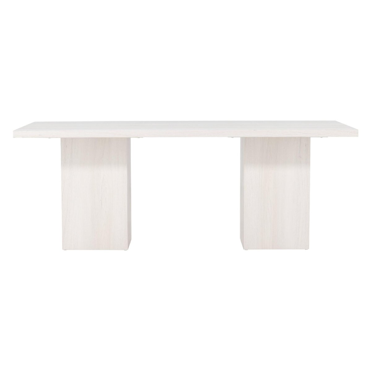 Deze eettafel is ontworpen met het oog op gebruiksgemak. Het ruime tafelblad biedt voldoende ruimte voor al je gerechten en decoraties. Dankzij de stevige poten staat de tafel stabiel, zelfs tijdens de meest levendige diners. De witte afwerking maakt het eenvoudig om de tafel te combineren met verschillende stijlen stoelen.