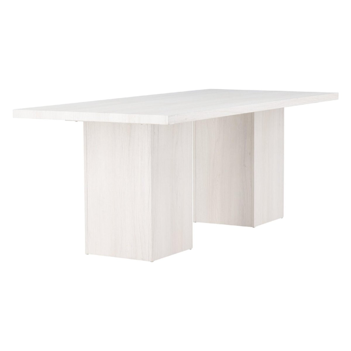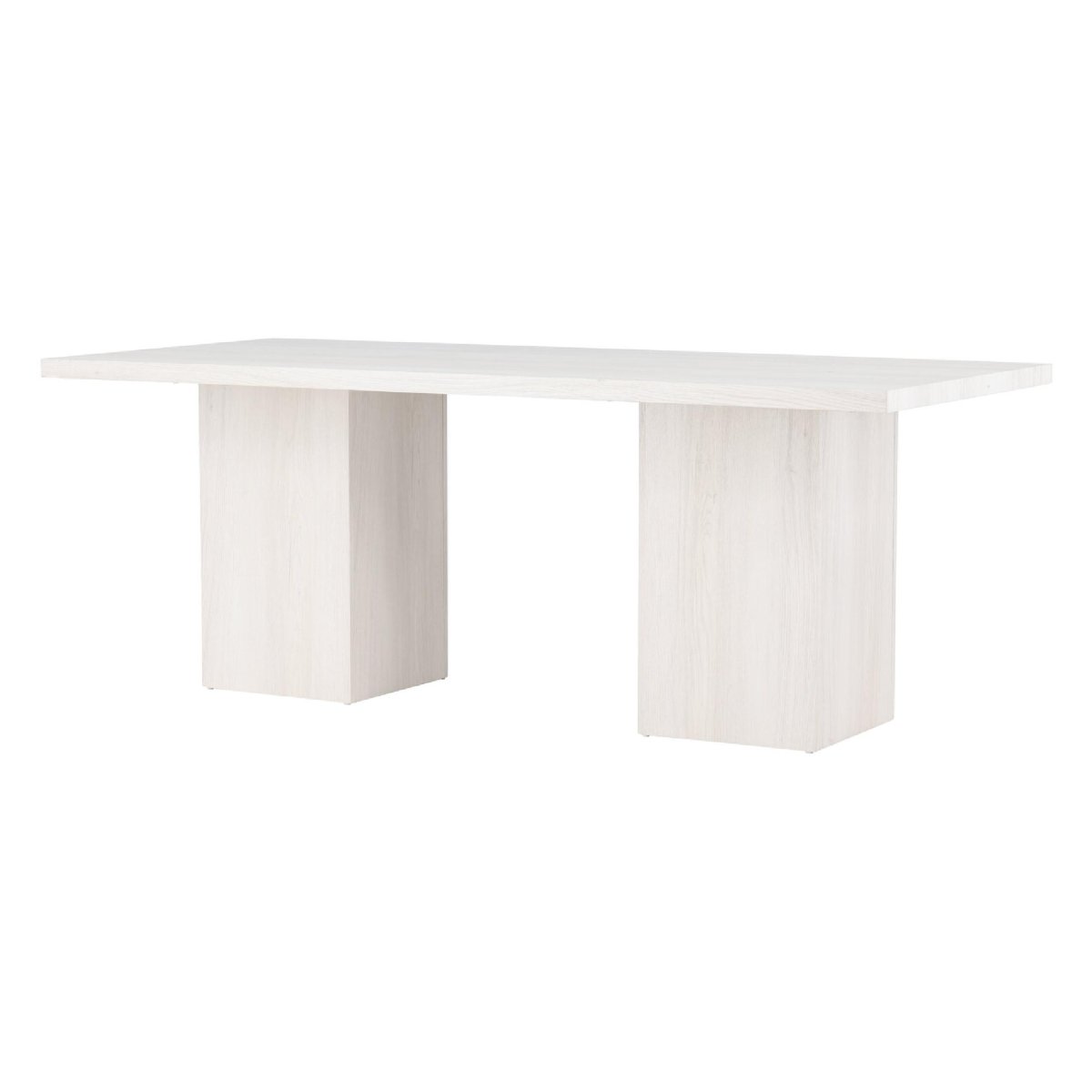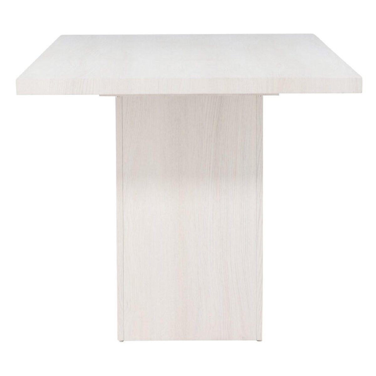 Deze eettafel is ontworpen met het oog op gebruiksgemak. Het ruime tafelblad biedt voldoende ruimte voor al je gerechten en decoraties. Dankzij de stevige poten staat de tafel stabiel, zelfs tijdens de meest levendige diners. De witte afwerking maakt het eenvoudig om de tafel te combineren met verschillende stijlen stoelen.