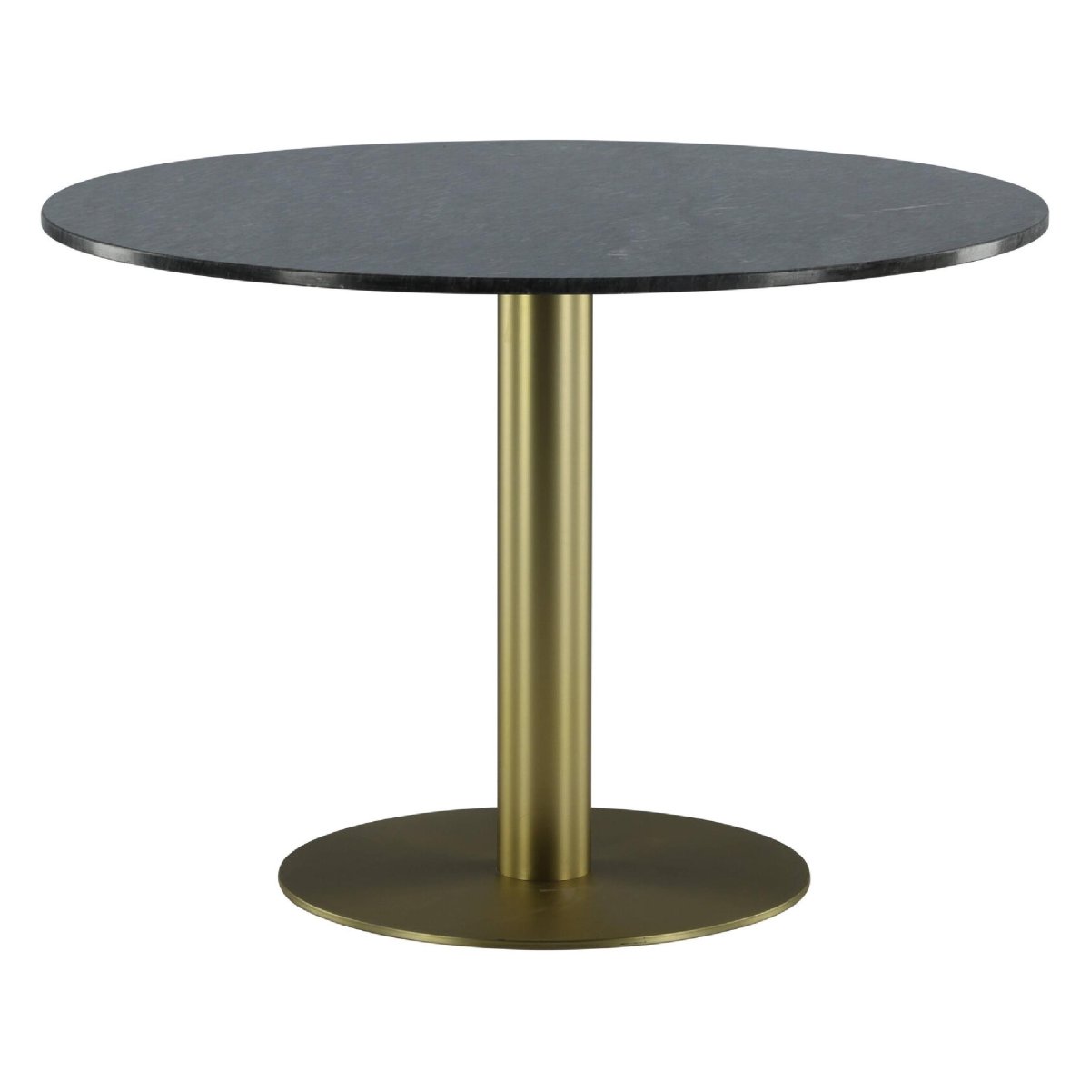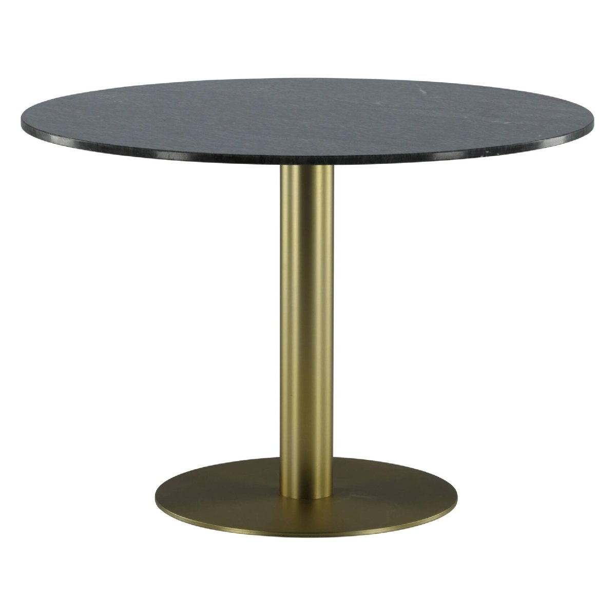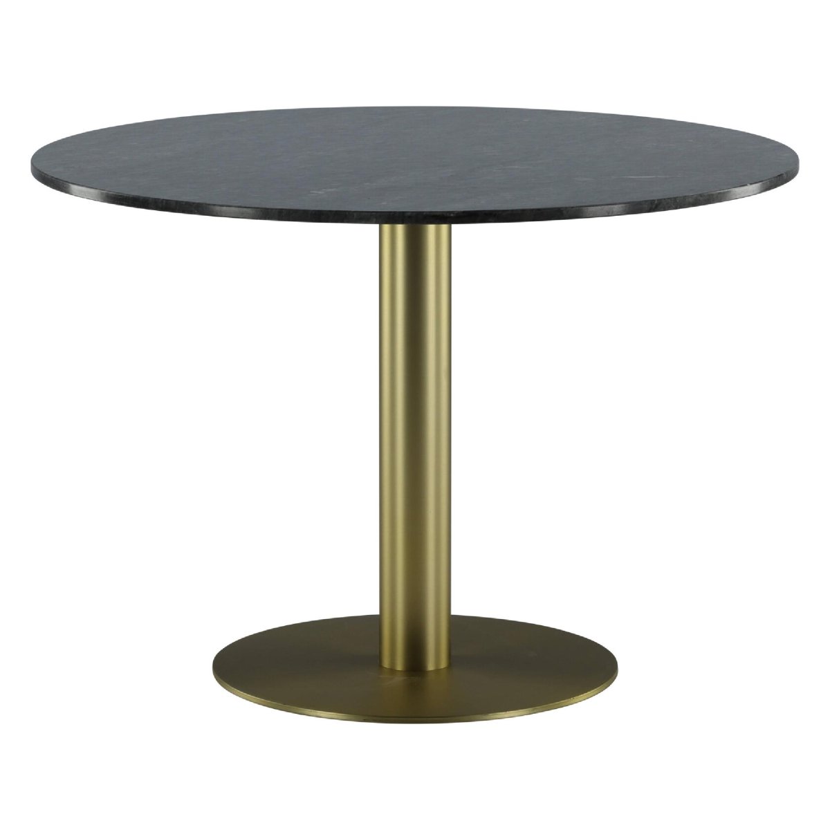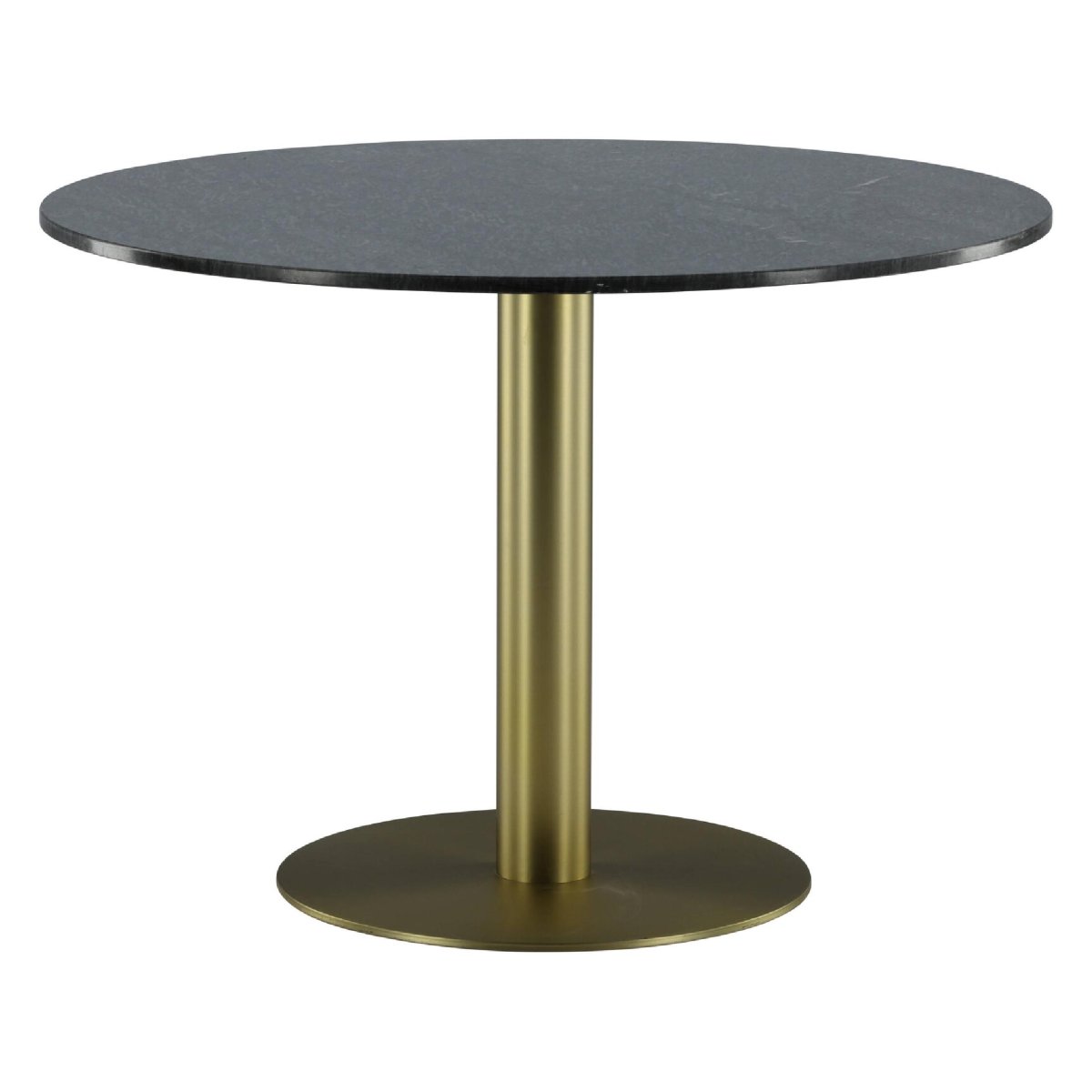 De Yovo Eettafel rond 106cm Grijs Marmer / Messing is een stijlvol en functioneel middelpunt voor jouw eetkamer. Deze ronde eettafel, met een elegant tafelblad van donkergrijs marmer en een verfijnd onderstel van goudkleurig staal, is een echte blikvanger. Het marmeren tafelblad straalt luxe uit en is perfect voor zowel dagelijkse maaltijden als feestelijke gelegenheden. Met een diameter van 106 cm biedt deze tafel voldoende ruimte om gezellig met familie en vrienden te dineren. De combinatie van marmer en messing zorgt voor een tijdloze uitstraling die in elk interieur past.