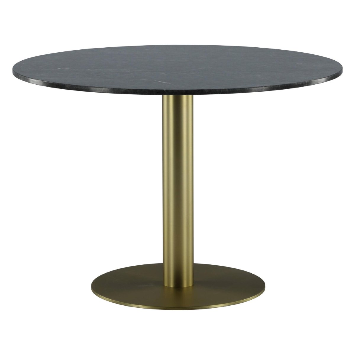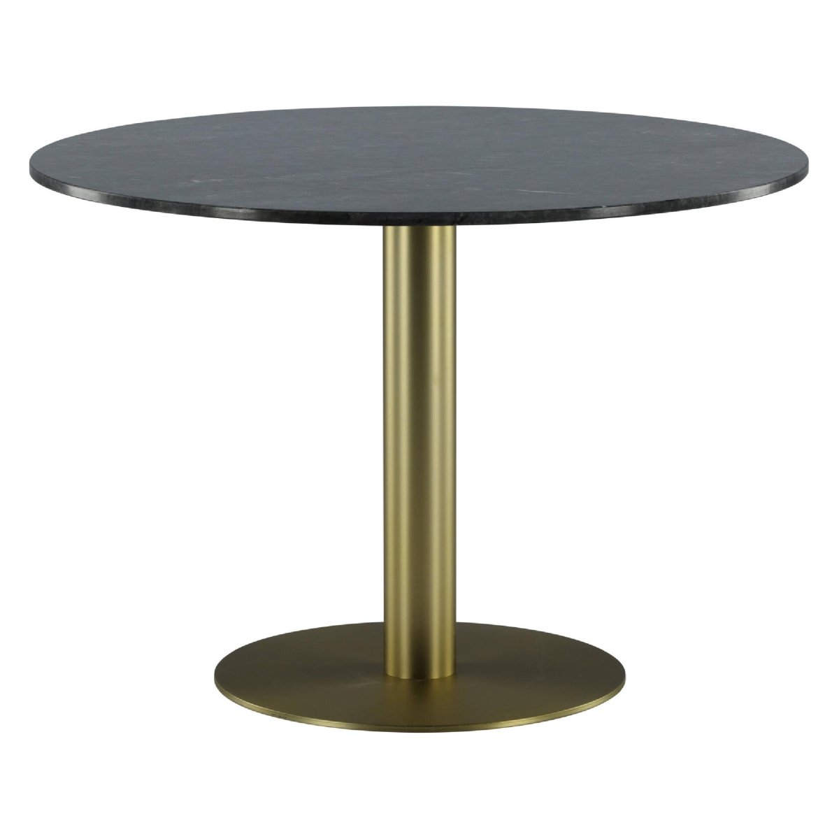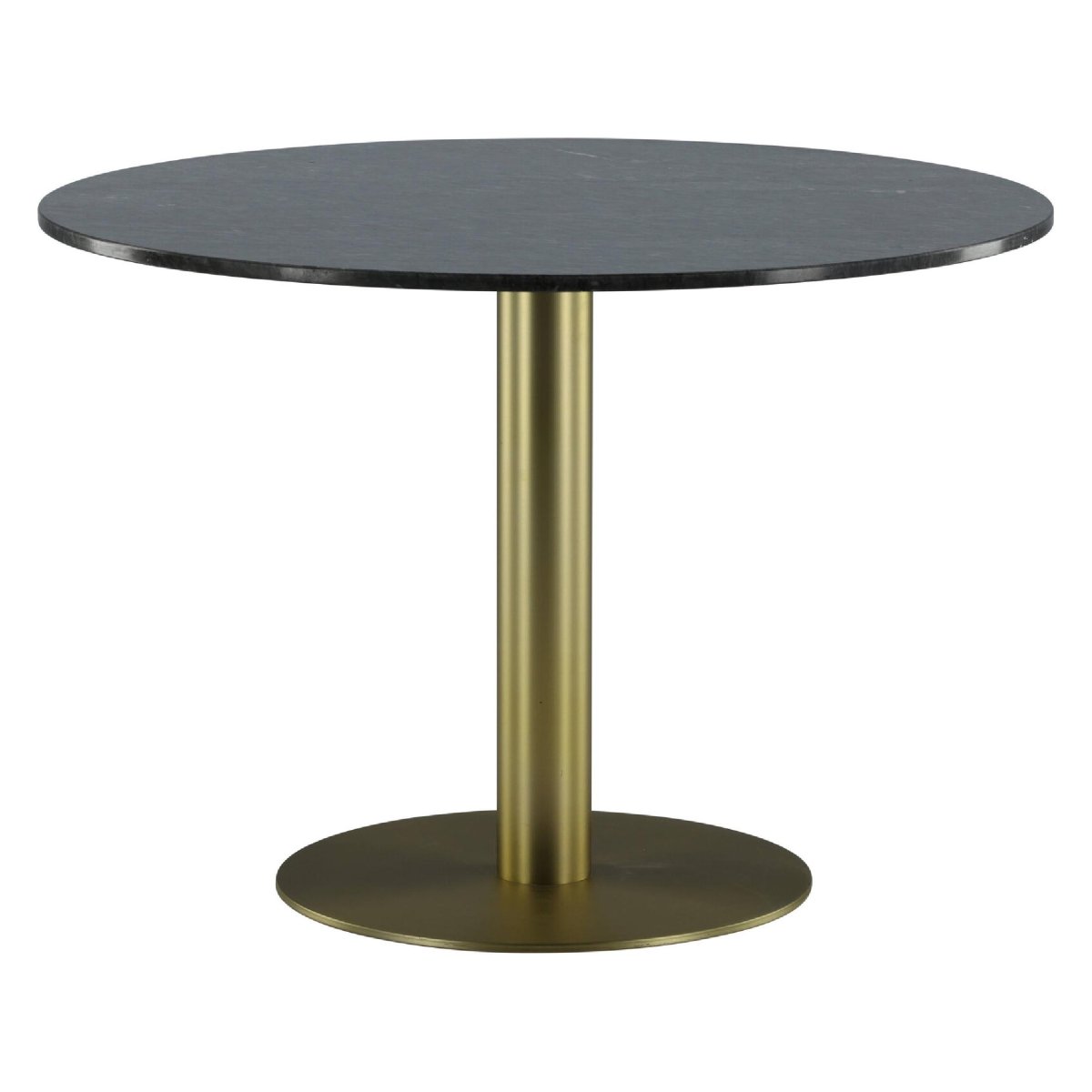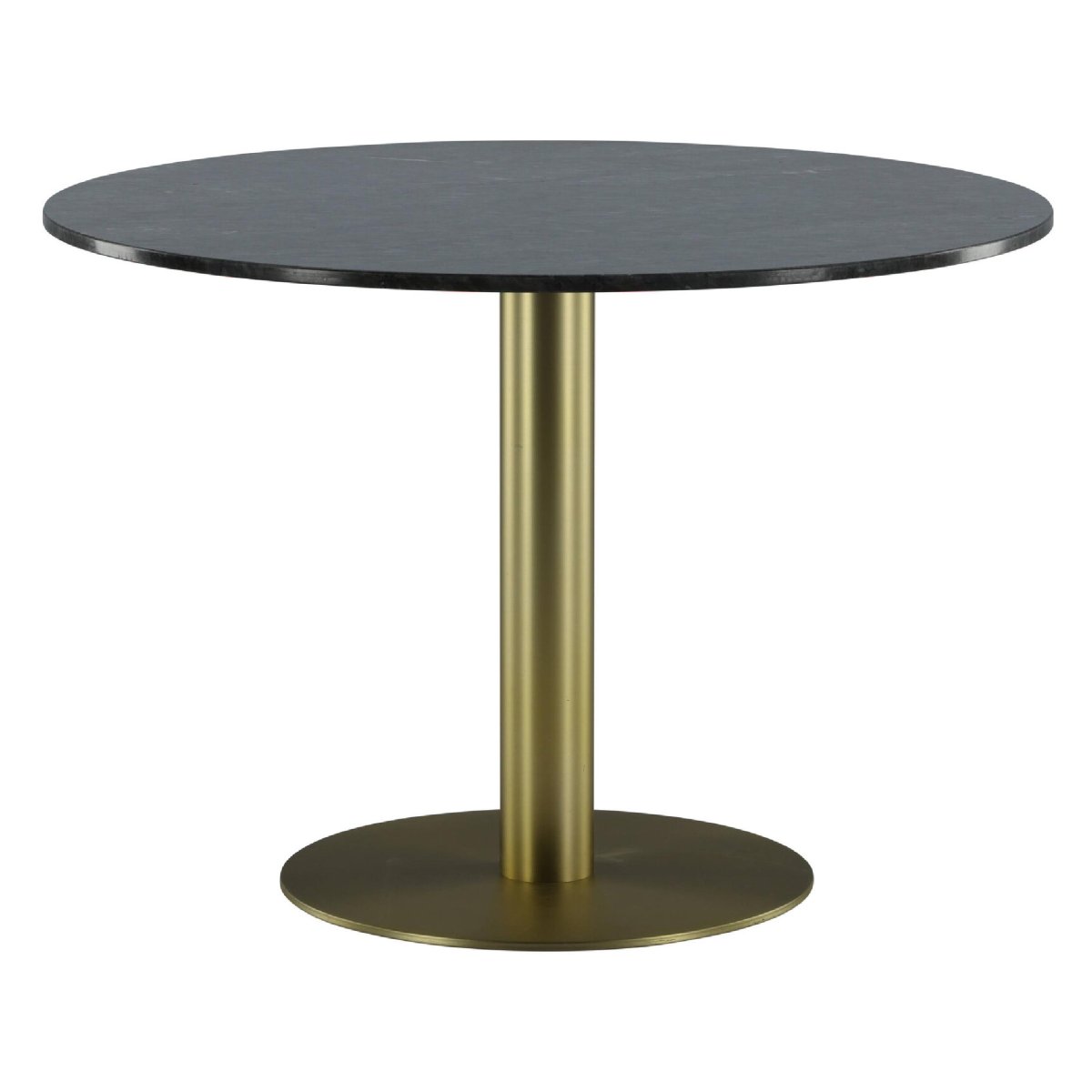 De Yovo Eettafel rond 106cm Grijs Marmer / Messing is een stijlvol en functioneel middelpunt voor jouw eetkamer. Deze ronde eettafel, met een elegant tafelblad van donkergrijs marmer en een verfijnd onderstel van goudkleurig staal, is een echte blikvanger. Het marmeren tafelblad straalt luxe uit en is perfect voor zowel dagelijkse maaltijden als feestelijke gelegenheden. Met een diameter van 106 cm biedt deze tafel voldoende ruimte om gezellig met familie en vrienden te dineren. De combinatie van marmer en messing zorgt voor een tijdloze uitstraling die in elk interieur past.