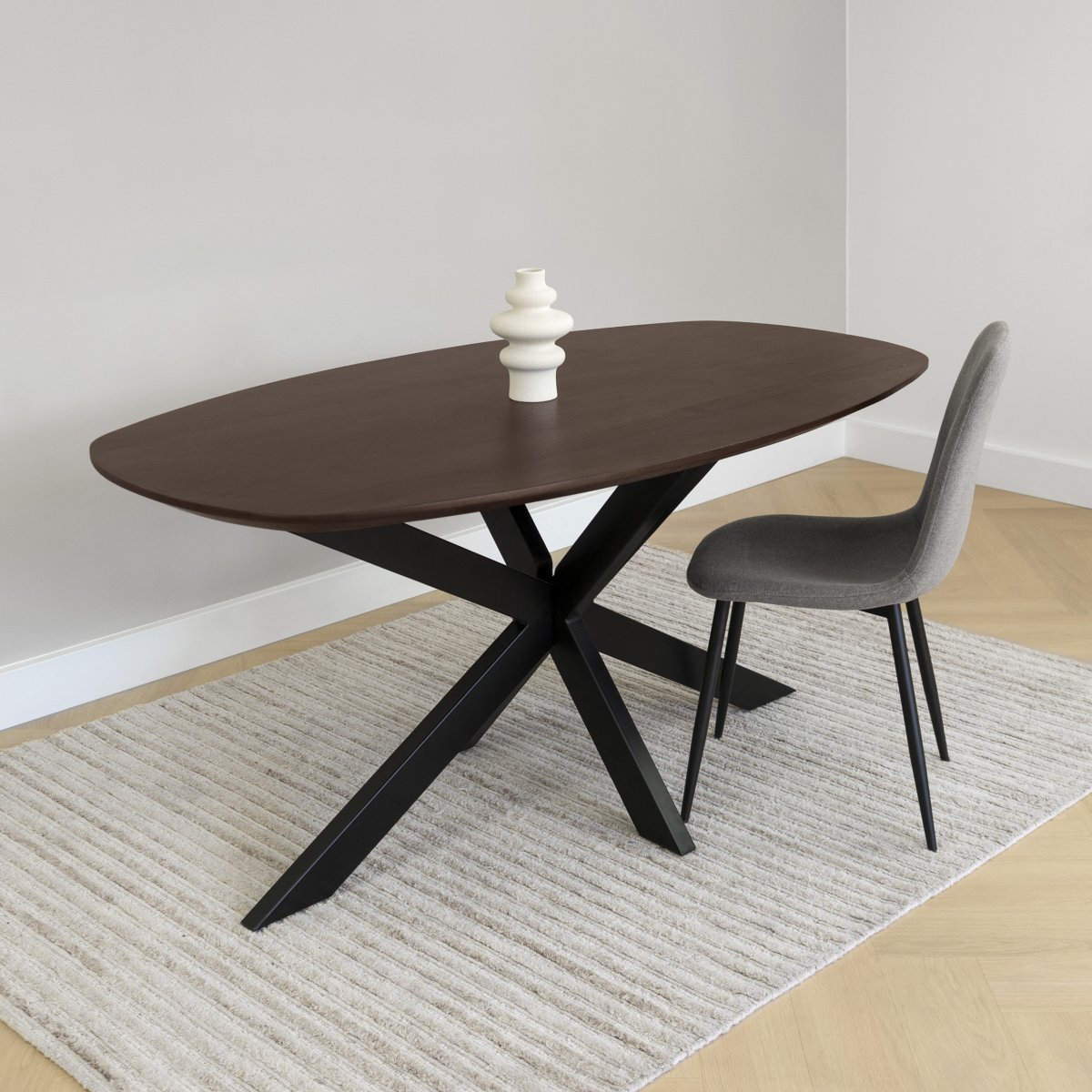 Het Deens ovale tafelblad geeft de eettafel een zachte, verfijnde uitstraling die perfect aansluit bij diverse woonstijlen. De warme walnoot bruine kleur benadrukt de rijke houtstructuur en geeft je eetkamer een gezellige, natuurlijke sfeer. Of je nu houdt van Scandinavisch minimalisme, een industrieel accent of een modern interieur, deze eettafel deens ovaal voegt stijl toe zonder te overheersen.