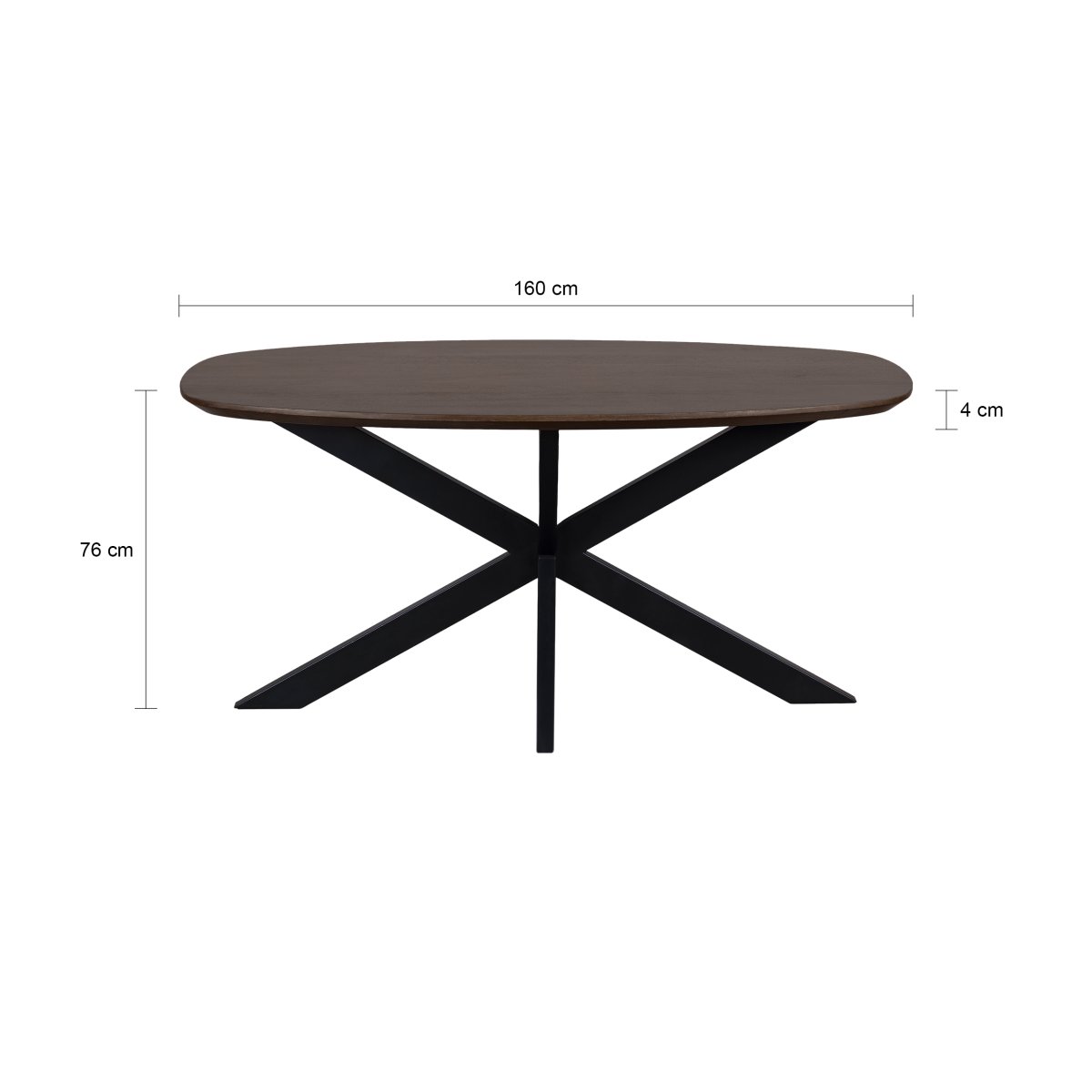 Met een lengte van 160 cm is deze walnootbruine eettafel ideaal voor kleinere eetruimtes, maar biedt toch voldoende ruimte voor zes personen. Het warme mangohout en het industriële onderstel vormen samen een stijlvolle combinatie die in elk interieur tot zijn recht komt. Dankzij de Deens ovale vorm van 160 x 90 cm is de tafel perfect voor diners en gezellige momenten met familie en vrienden.