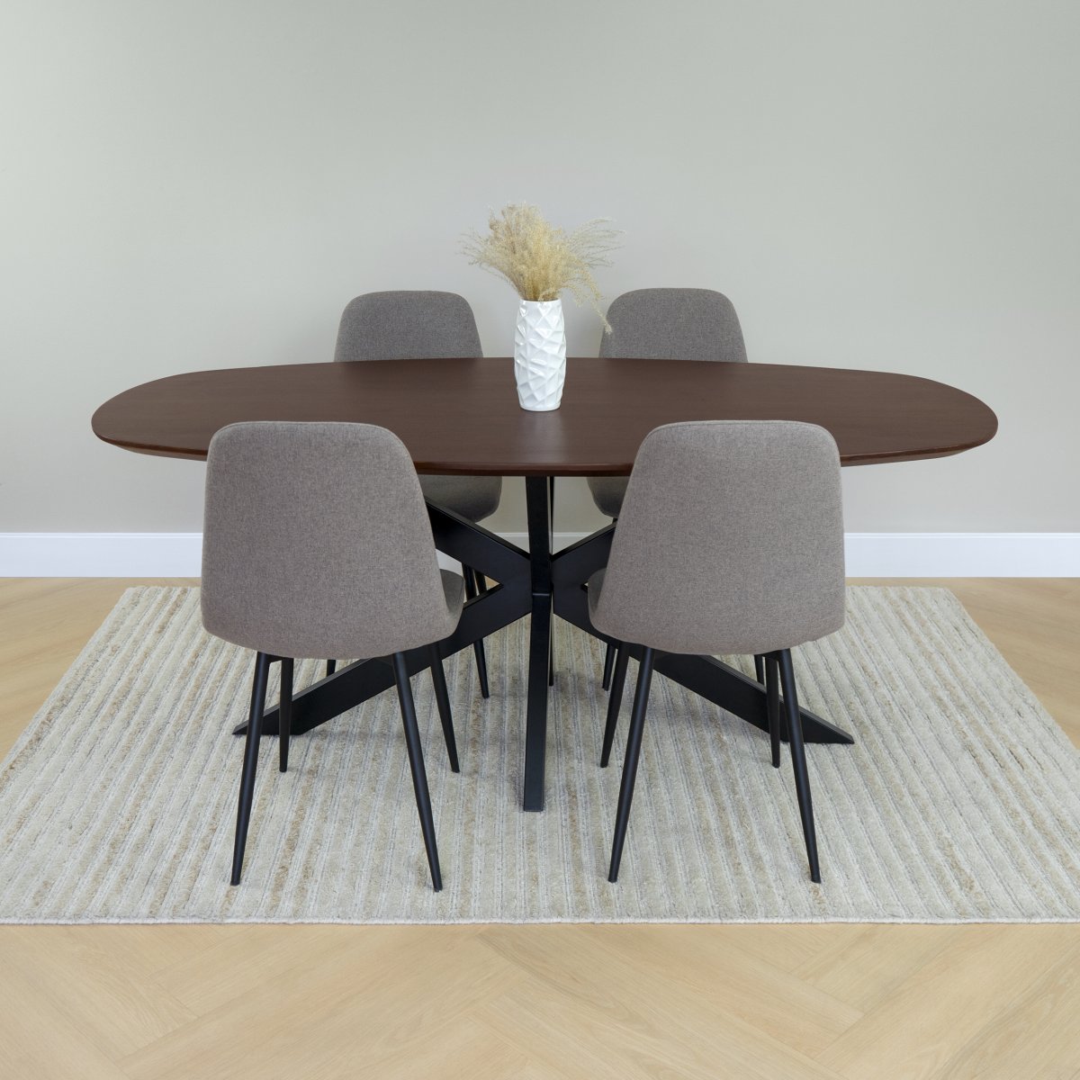 De Deens ovale vorm van het blad geeft de Sofia eettafel een verfijnde uitstraling die perfect past in uiteenlopende interieurstijlen. De warme walnoot bruine kleur in combinatie met de natuurlijke houtnerf maakt de tafel uitnodigend en sfeervol. Of je nu een Scandinavische, industriële of moderne inrichting hebt deze tafel vormt moeiteloos het stijlvolle middelpunt van je eetkamer.