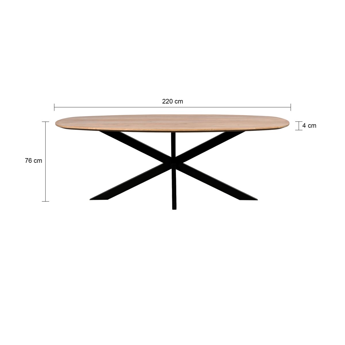 Met een royale afmeting van 220×110 cm biedt de eettafel voldoende ruimte voor al je maaltijden en bijeenkomsten. Of je nu een uitgebreid diner organiseert of een spelletjesavond met vrienden, aan deze tafel is altijd genoeg plaats. De hoogte van 76 cm zorgt voor een comfortabele zitervaring.