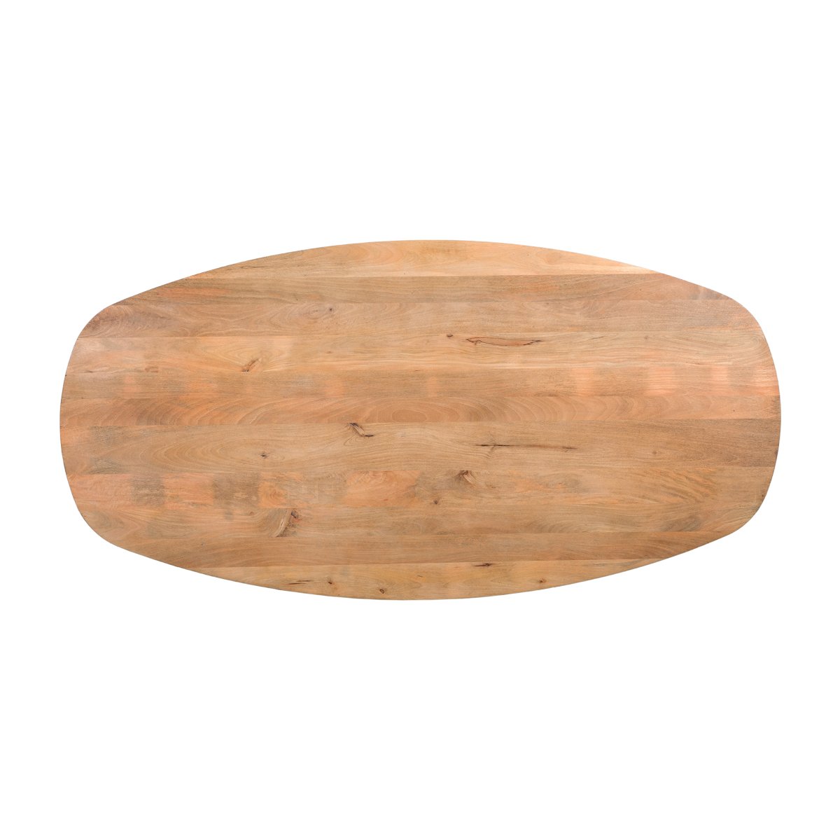 De Deens ovale vorm van het tafelblad en de stijlvolle stalen kruispoten geven de eettafel een unieke en moderne uitstraling. De natuurlijke kleur van het mangohout voegt een warme en uitnodigende sfeer toe aan je eetkamer. Deze Deens ovale eettafel mangohout 220×110 cm past perfect in diverse interieurstijlen, van Scandinavisch tot industrieel.
