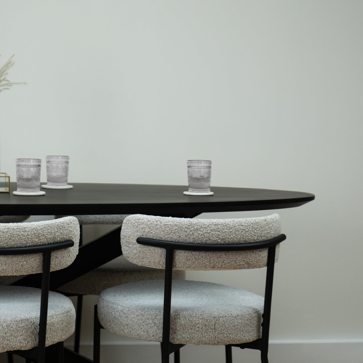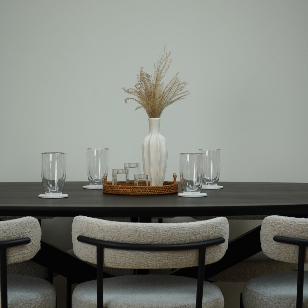 Met zijn royale afmetingen van 220×100 cm is de eettafel ovaal groot genoeg om comfortabel plaats te bieden aan zes tot acht personen. Dit maakt het de ideale tafel voor grote gezinnen of voor degen die graag gasten ontvangen. De ovale vorm zorgt voor een dynamische en uitnodigende sfeer in de eetkamer.