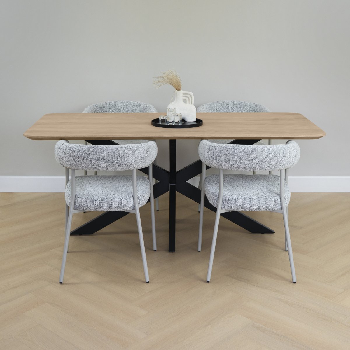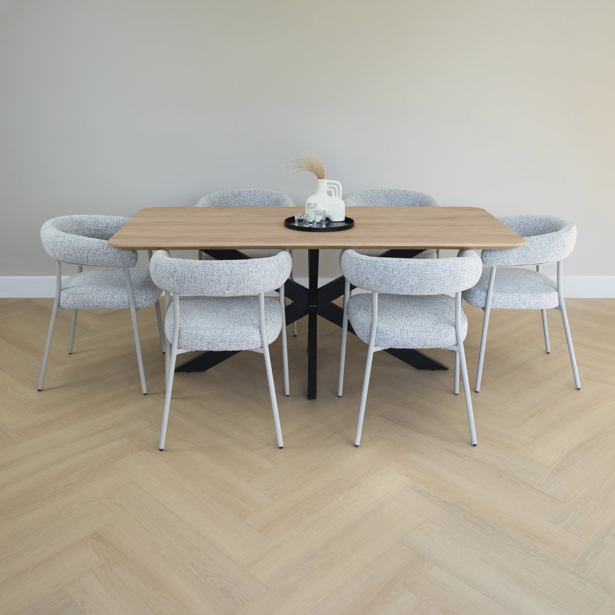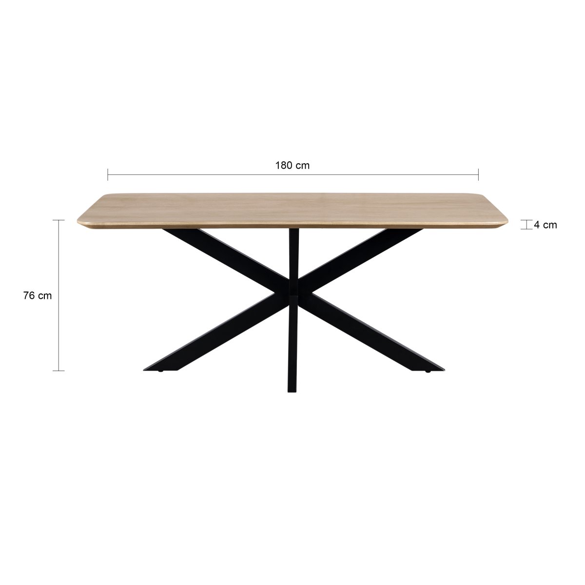 Met een lengte van 180 cm en een breedte van 90 cm biedt deze tafel comfortabel plaats aan zes stoelen. De hoogte van 76 cm maakt het tafelen aangenaam en past bij vrijwel alle standaard eetkamerstoelen. De afgeronde randen zorgen niet alleen voor een zachtere look, maar maken de tafel ook vriendelijker in gebruik, zeker in een huishouden met kinderen.