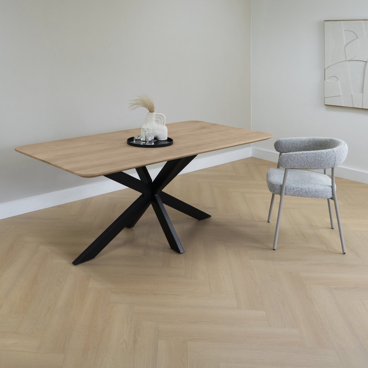 Eigentijdse eettafel met industrieel accent