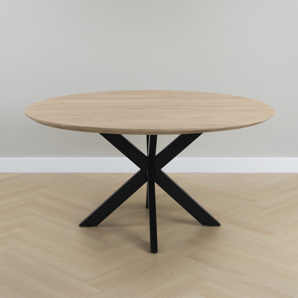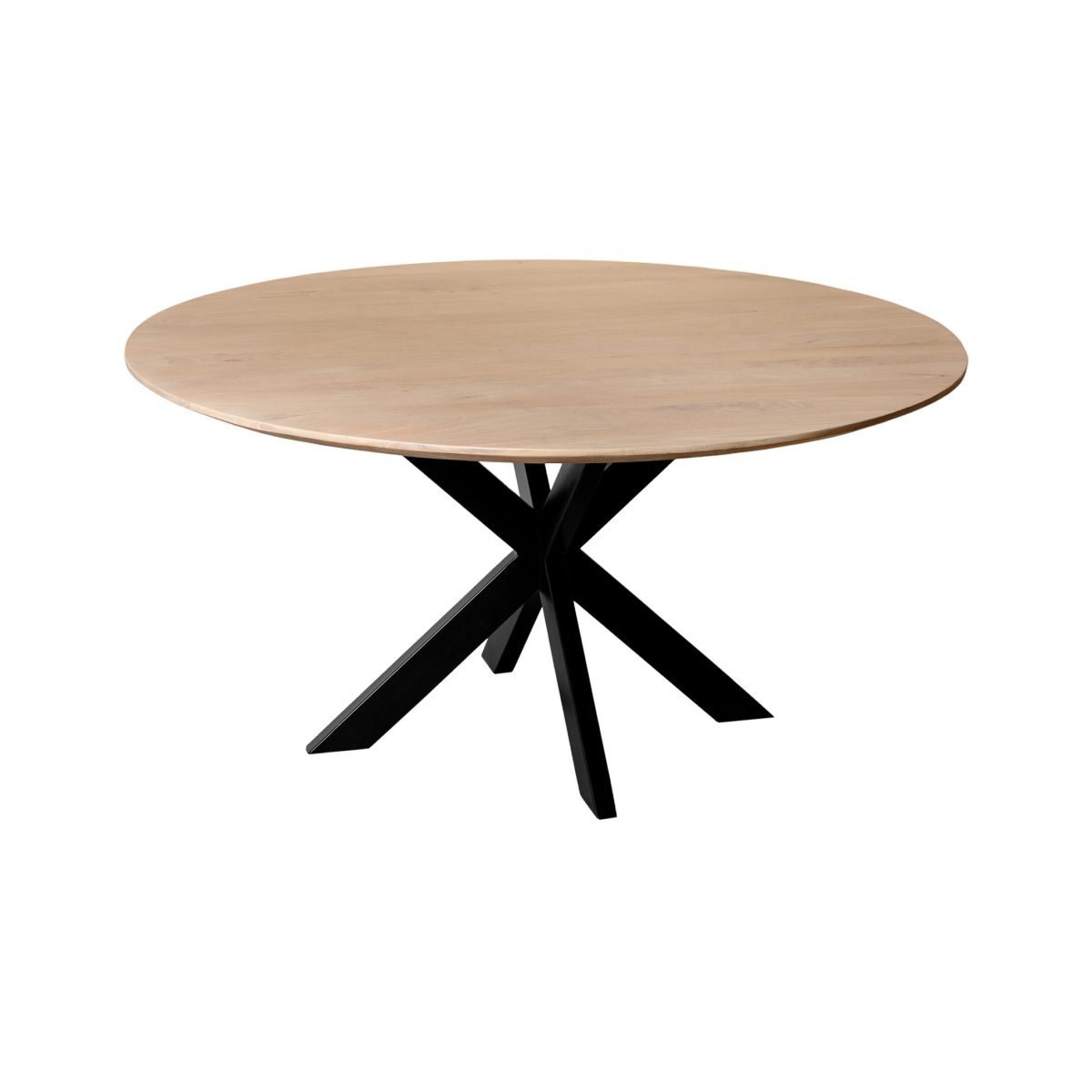 Grote ronde eettafel van QUVIO met stalen x poot en warm mangohout blad