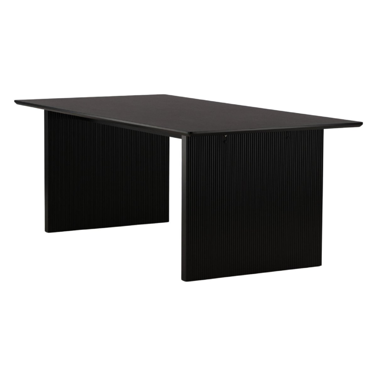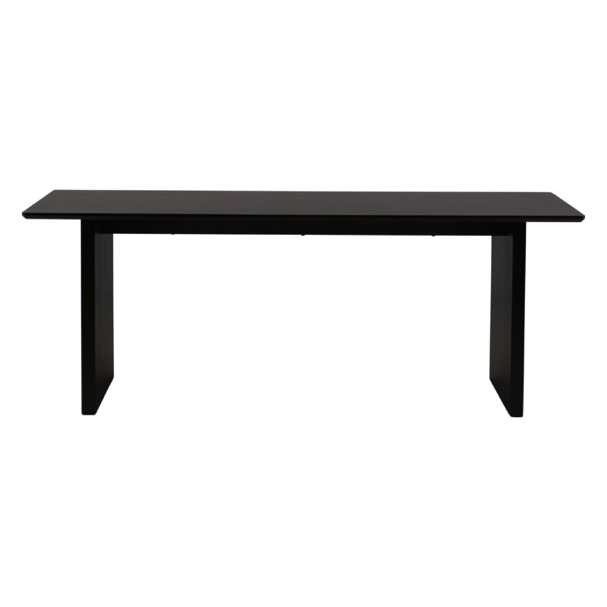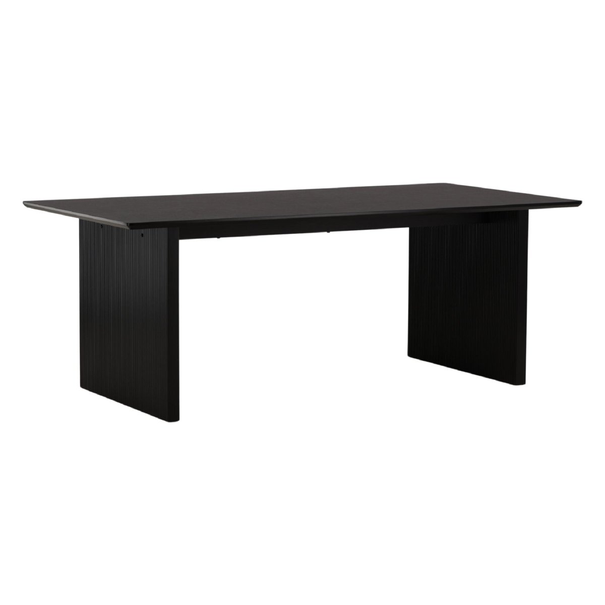 De QUVIO Eettafel – Zwart / Gerookt Zwart MDF is de perfecte aanvulling voor jouw eetkamer. Met zijn strakke, Scandinavische vormen en duurzame MDF-constructie, biedt deze rechthoekige eettafel zowel stijl als functionaliteit. De dunne tafelblad in een elegante zwarte kleur is eenvoudig te combineren met andere interieurstukken. Het onderstel bestaat uit twee stevige houten platen die zorgen voor stabiliteit en een moderne uitstraling. Deze tijdloze eettafel is ontworpen om jarenlang mee te gaan en past in elke interieurstijl.