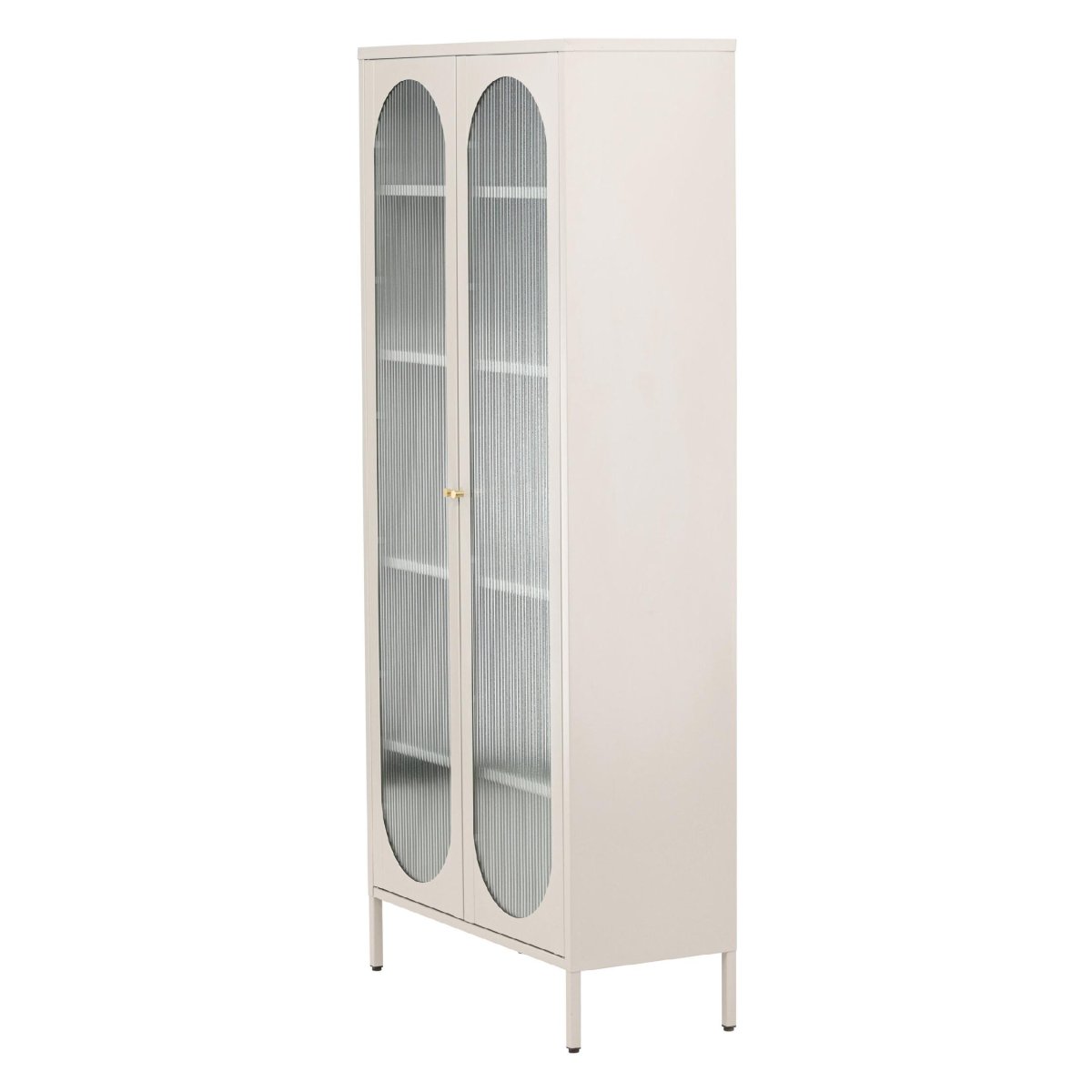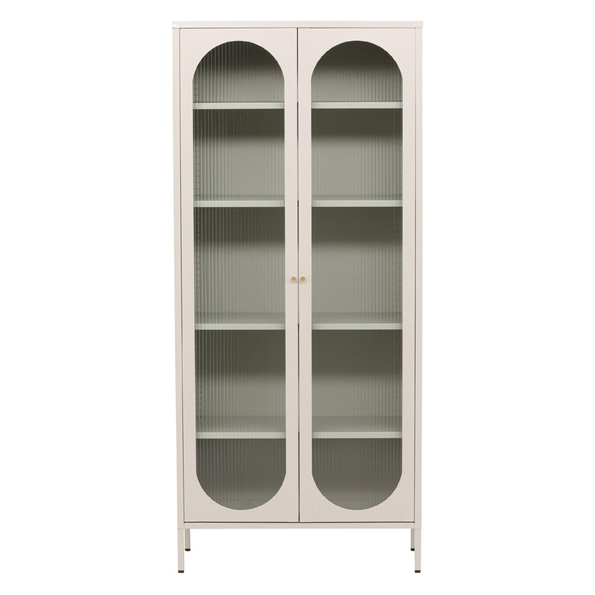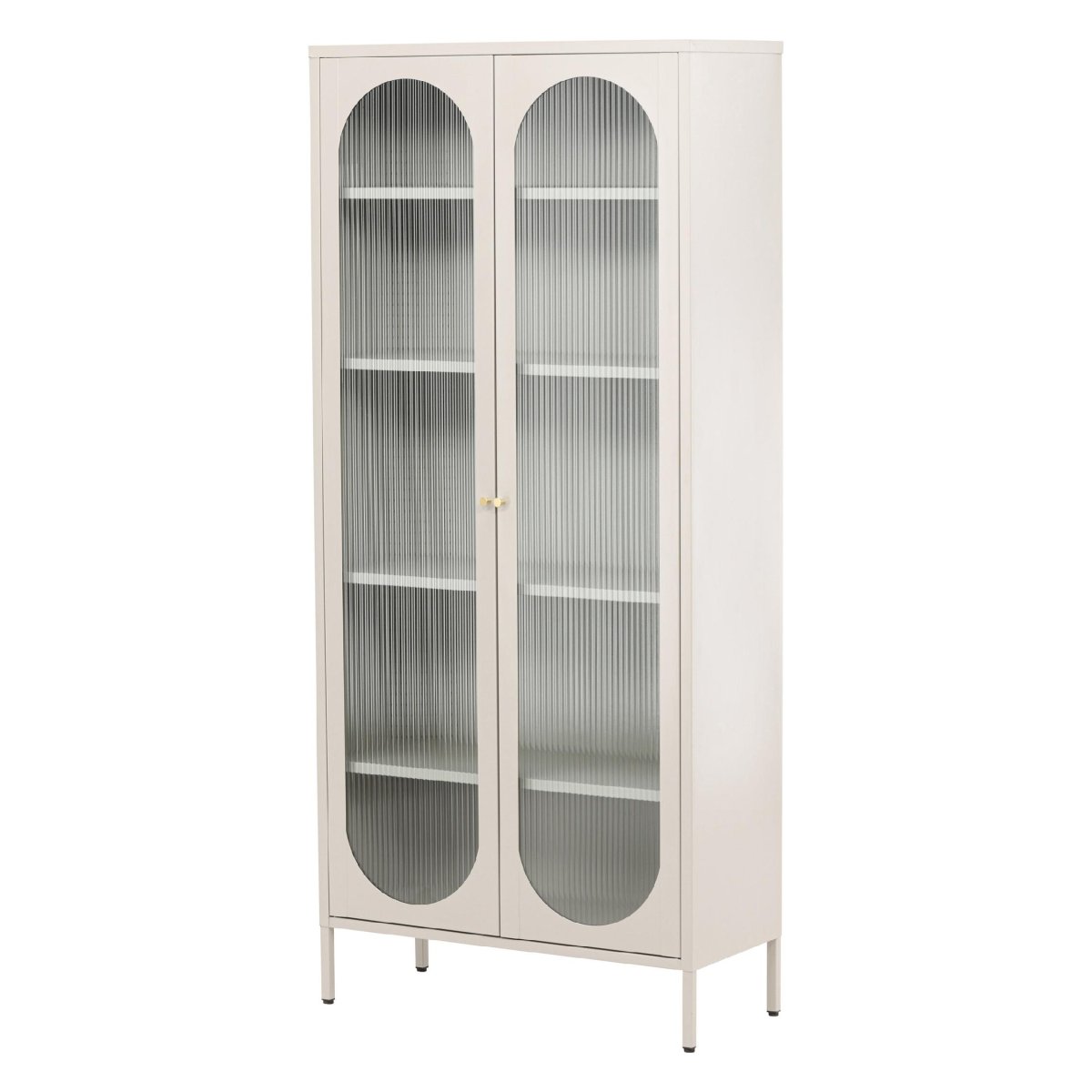 Met vier ruime planken biedt de Oskar Cabinet voldoende opbergruimte voor al je spullen. De wavy glazen deuren voegen niet alleen een uniek visueel element toe, maar zorgen er ook voor dat je gemakkelijk kunt zien wat er in de kast staat. Dit maakt het organiseren van je spullen eenvoudig en stijlvol.