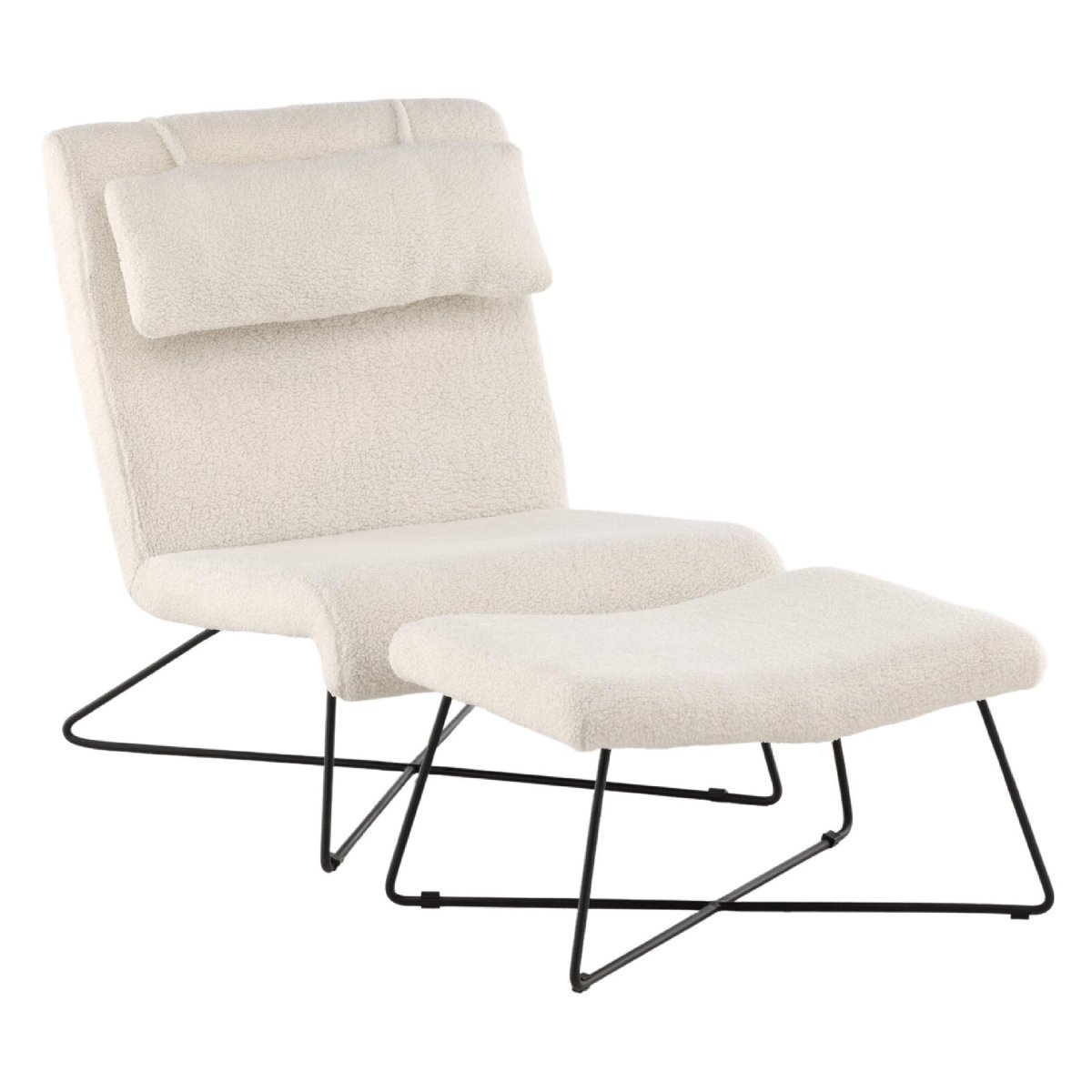 Met de bijgeleverde voetenbank en nekkussen biedt deze lounge stoel ultiem comfort. De zachte bouclé stof voelt aangenaam aan en de ergonomische vormgeving ondersteunt je lichaam op de juiste plekken. Perfect voor een ontspannen avondje lezen of tv-kijken.