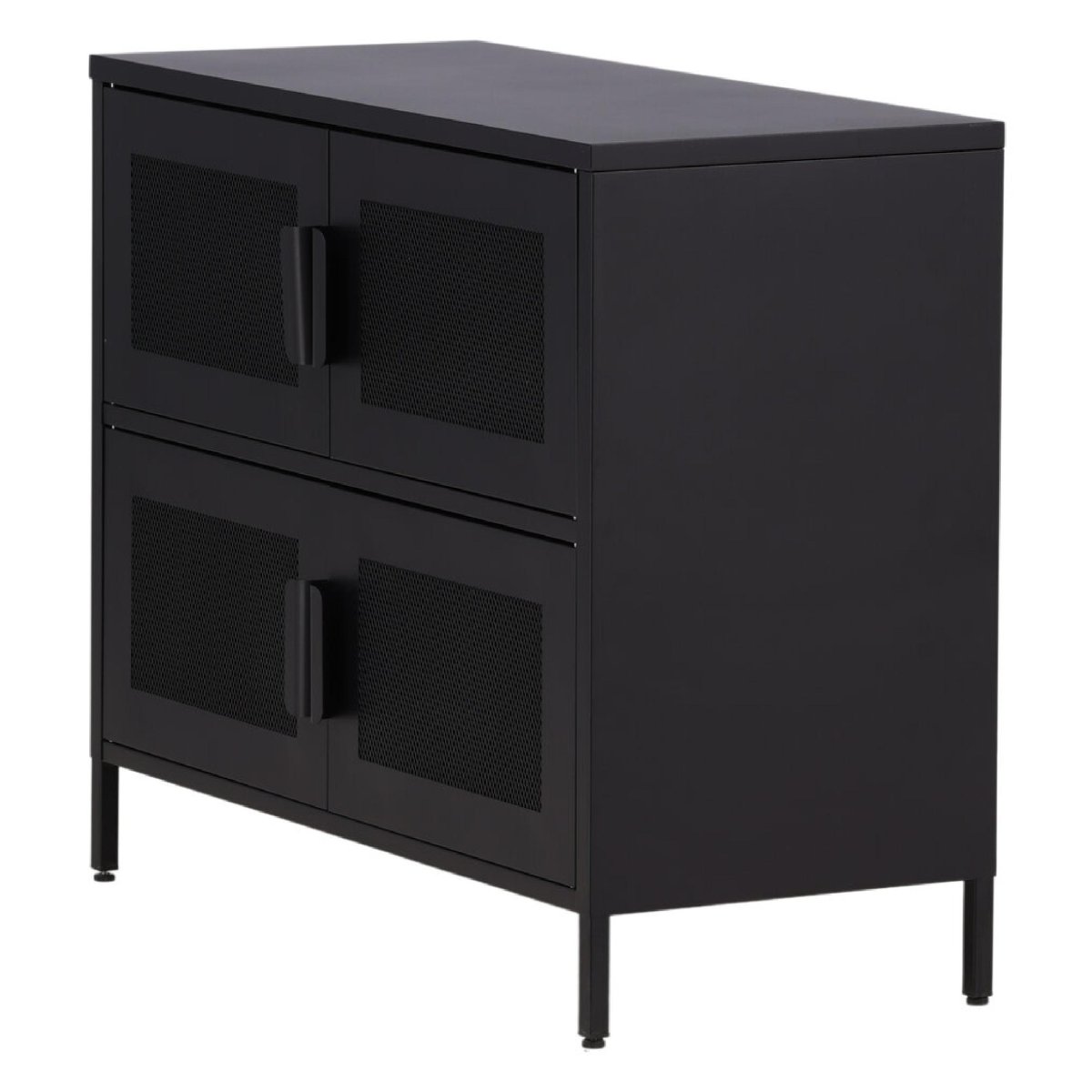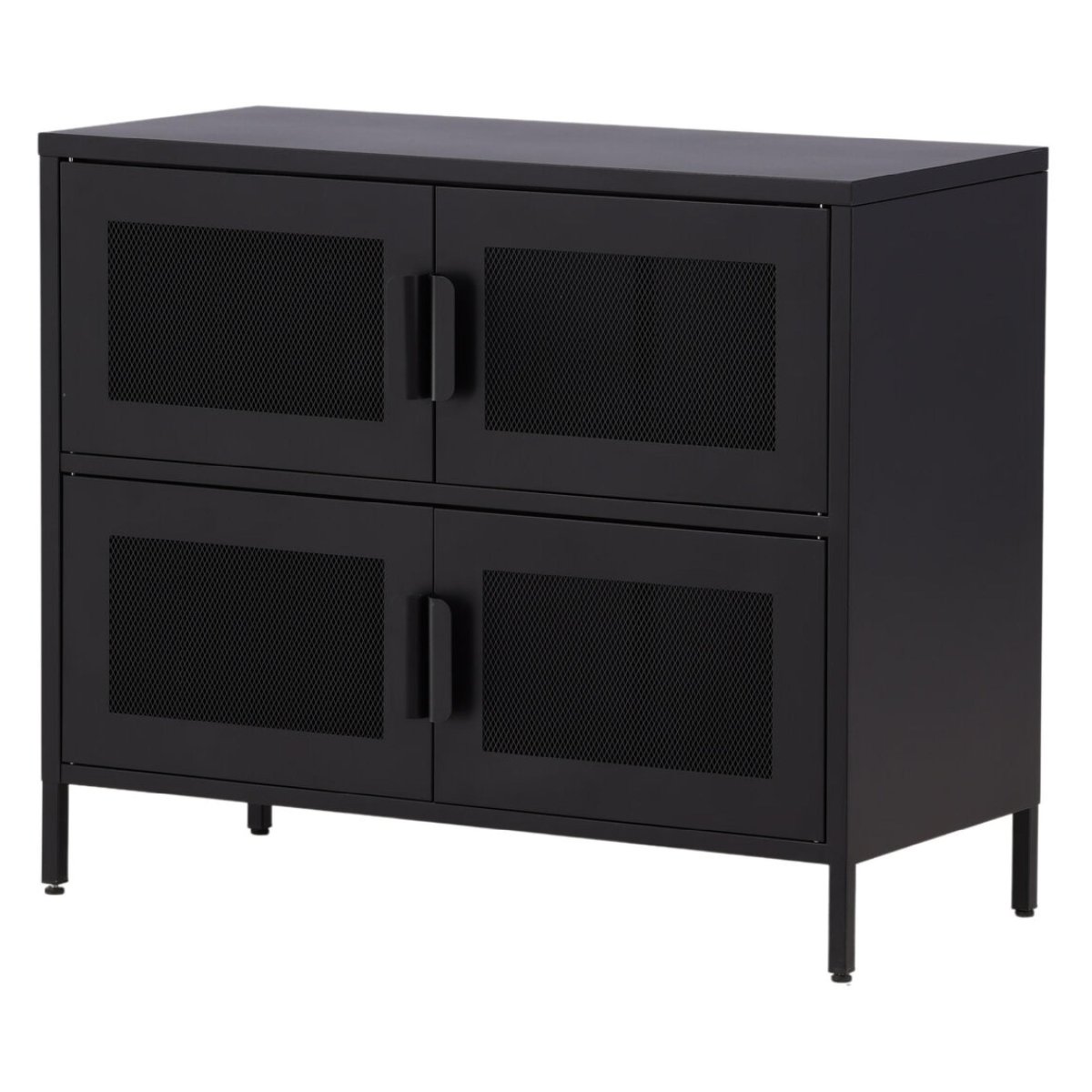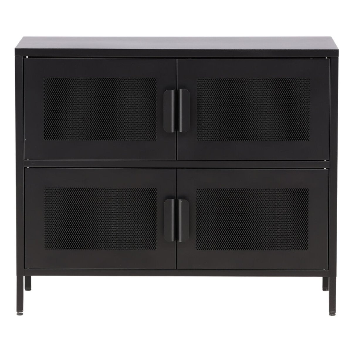 De industriële stijl van de Gomi kast – Zwart past perfect in moderne en minimalistische interieurs. De combinatie van zwart staal en het open ontwerp met netdeuren geeft de kast een unieke uitstraling. Het is een meubelstuk dat niet alleen functioneel is, maar ook een statement maakt in je huis.