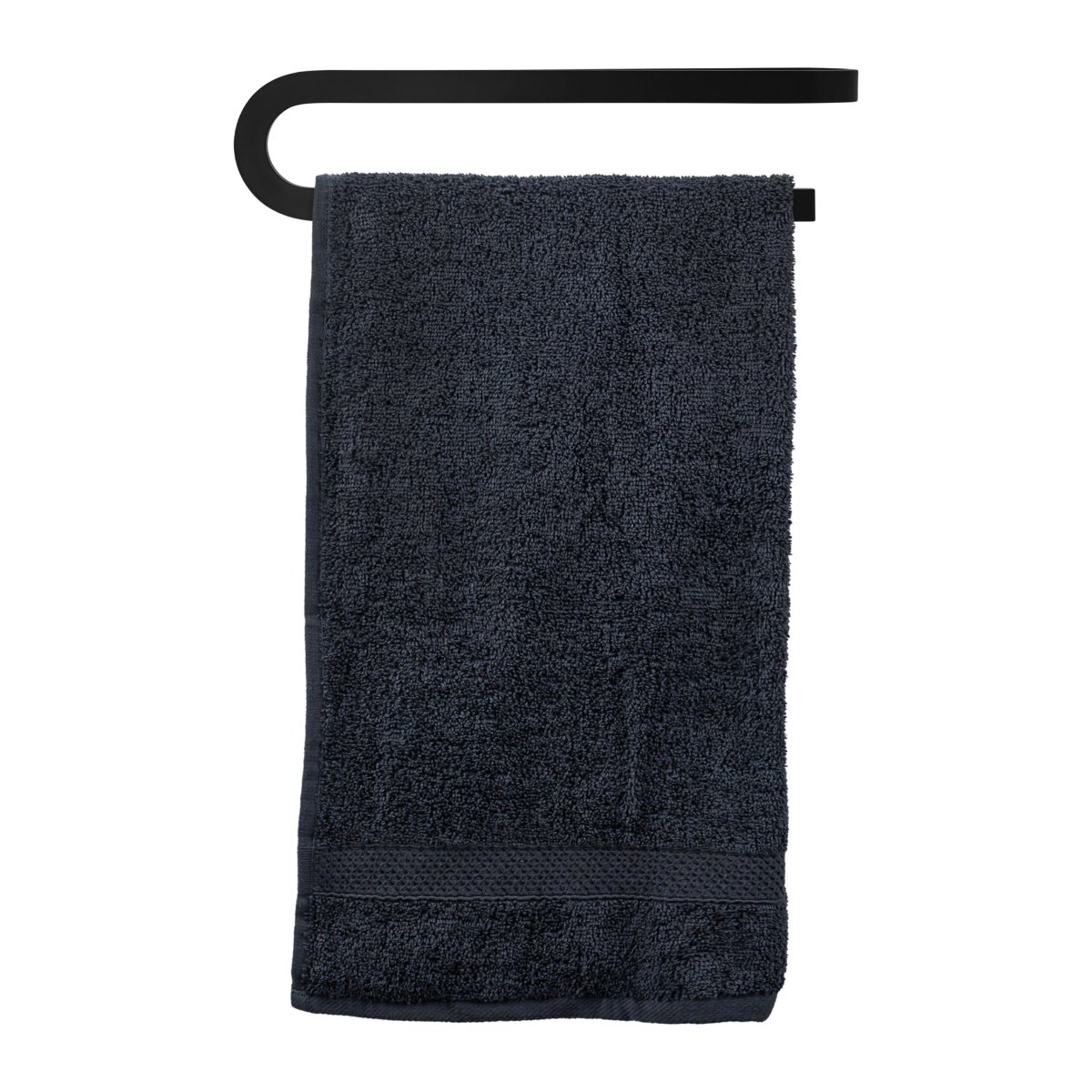 Een opvallende handdoekhouder van metaal in het zwart voor in de badkamer