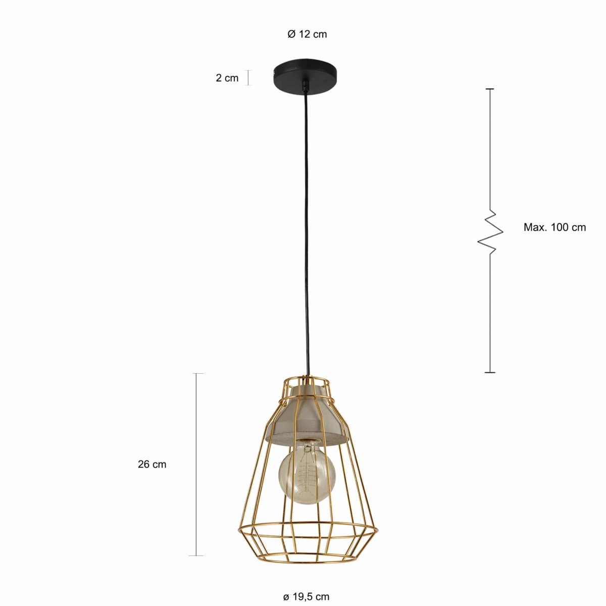 QUVIO Hanglamp industrieel – Beton met kooi lang – Diameter 19,5 cm