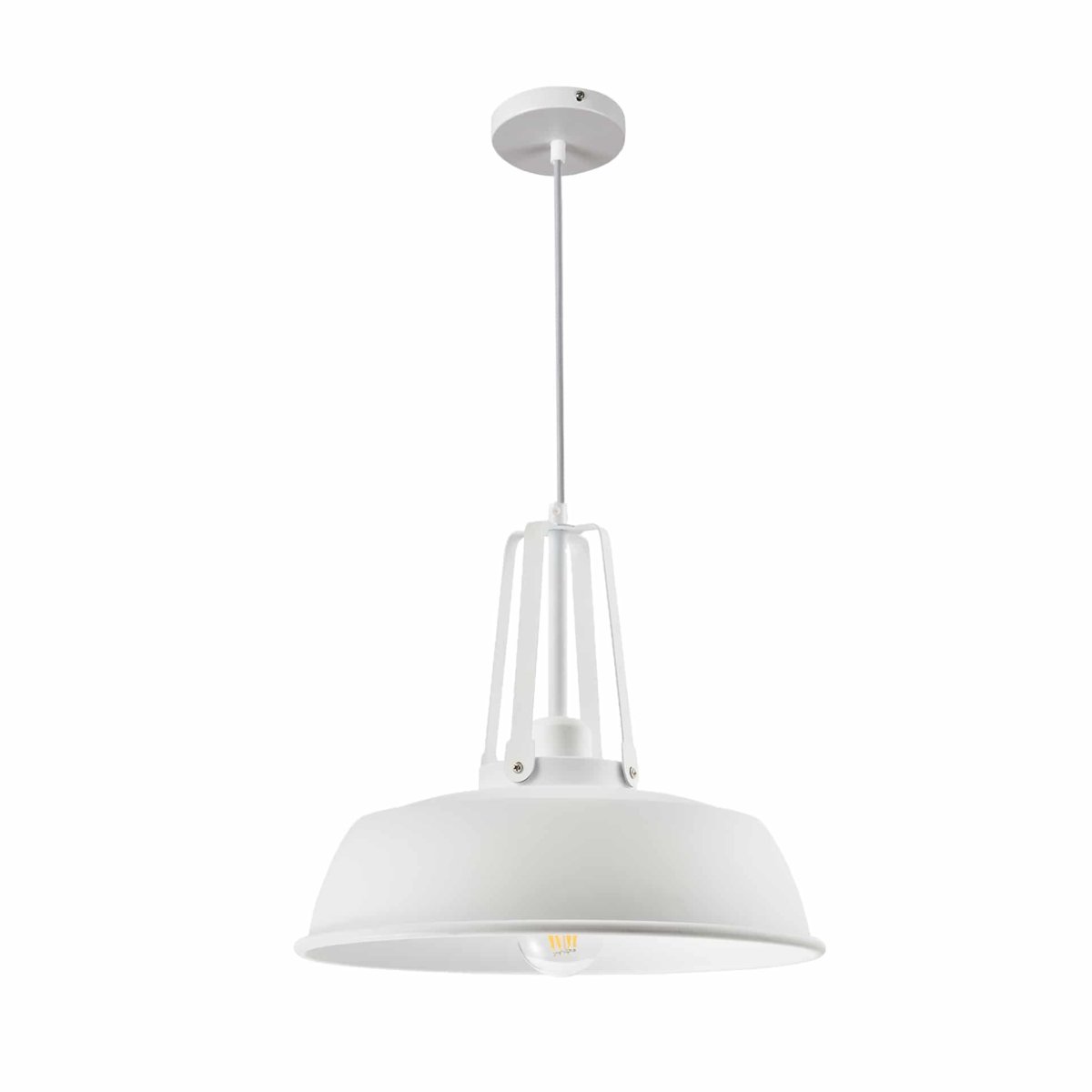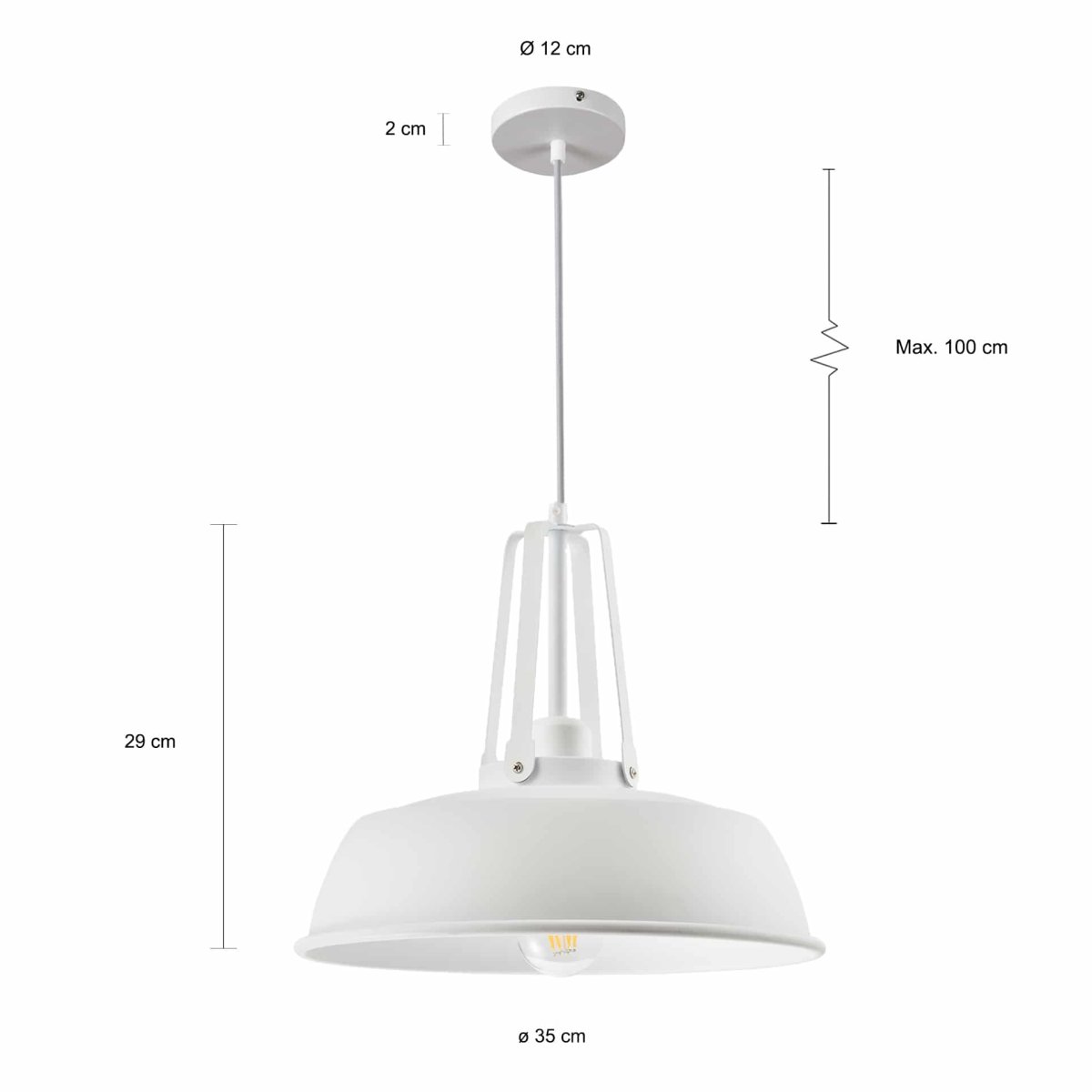 Deze industriële hanglamp met een diameter van 35 cm in het wit mag in je kamer, kantoorruimte of kantine niet ontbreken. Een industriële hanglamp maakt, samen met het meubilair, accessoires en kleurgebruik, het interieur helemaal af. Een gave hanglamp met een diameter van 35 cm en een hoogte van 29 cm. De maximale snoerlengte is 100 cm en kun je eenvoudig inkorten indien nodig. Deze stijlvolle lamp is prima te combineren met een interieur dat volstaat met industrie-achtige spullen en meubilair en zorgt voor een perfect verlichte ruimte!
