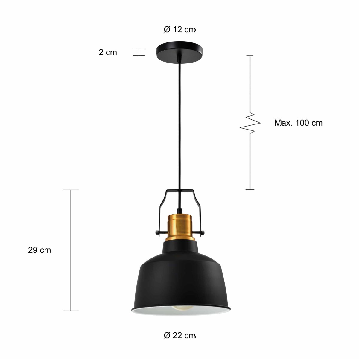 De plafondlamp heeft een maximale snoerlengte van een meter en is daarmee geschikt voor plafonds van diverse hoogten. Wanneer je plafond hoger is, kun je met de klein model industriële hanglamp toch voldoende licht boven de eettafel krijgen. Is je plafond niet zo hoog? Dan kun je het snoer korter houden en de lamp hangt zo dichter bij het plafond.