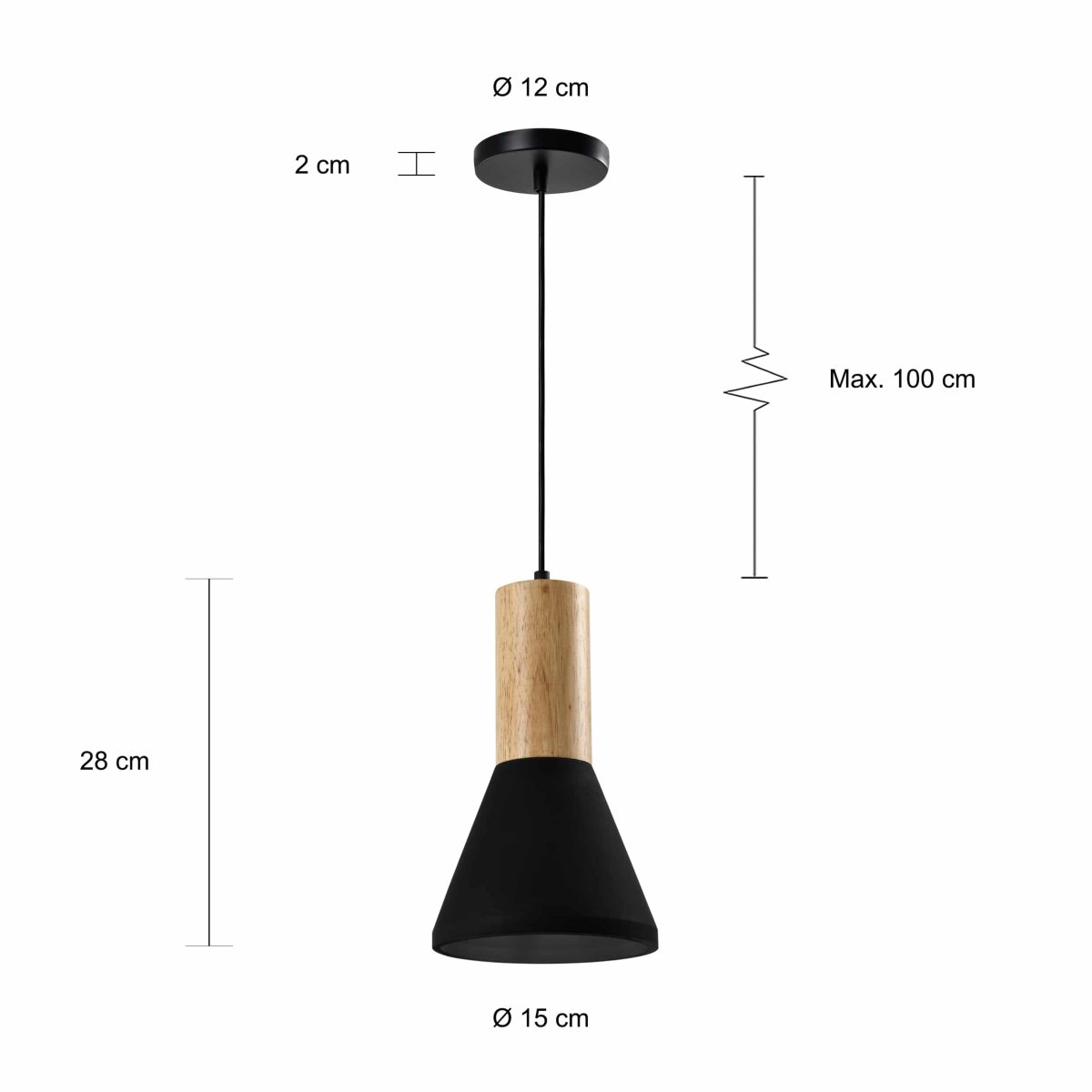 Deze zwarte betonnen landelijke hanglamp van QUVIO is gemaakt van hout en beton. Hierdoor is de lamp niet te aanwezig in het interieur, maar kan het wel zonder twijfel een erg stijlvolle woonaccessoire worden genoemd. Deze plafondlamp wordt geleverd met een snoer van 100 centimeter en de diameter van de montageplaat bedraagt 12 centimeter.